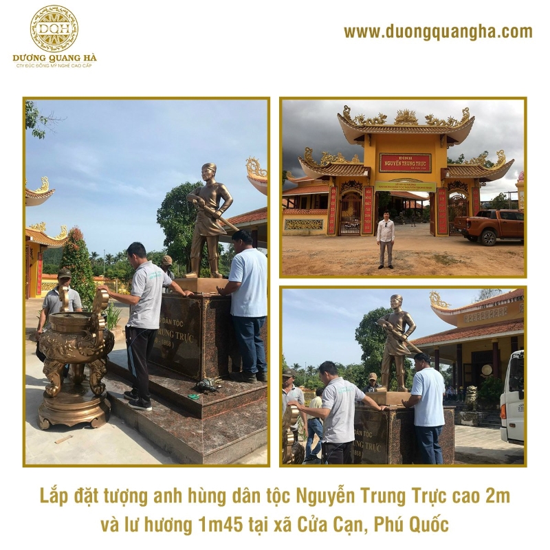 Tượng anh hùng dân tộc Nguyễn Trung Trực cao 2m và lư hương 1m45 được người dân tại xã Cửa Cạn, Phú Quốc đặt đúc tại Dương Quang Hà. Tượng Nguyễn Trung Trực và lư hương hiện được trưng bày và thờ cúng tại dinh Nguyễn Trung Trực thuộc xã Cửa Cạn.