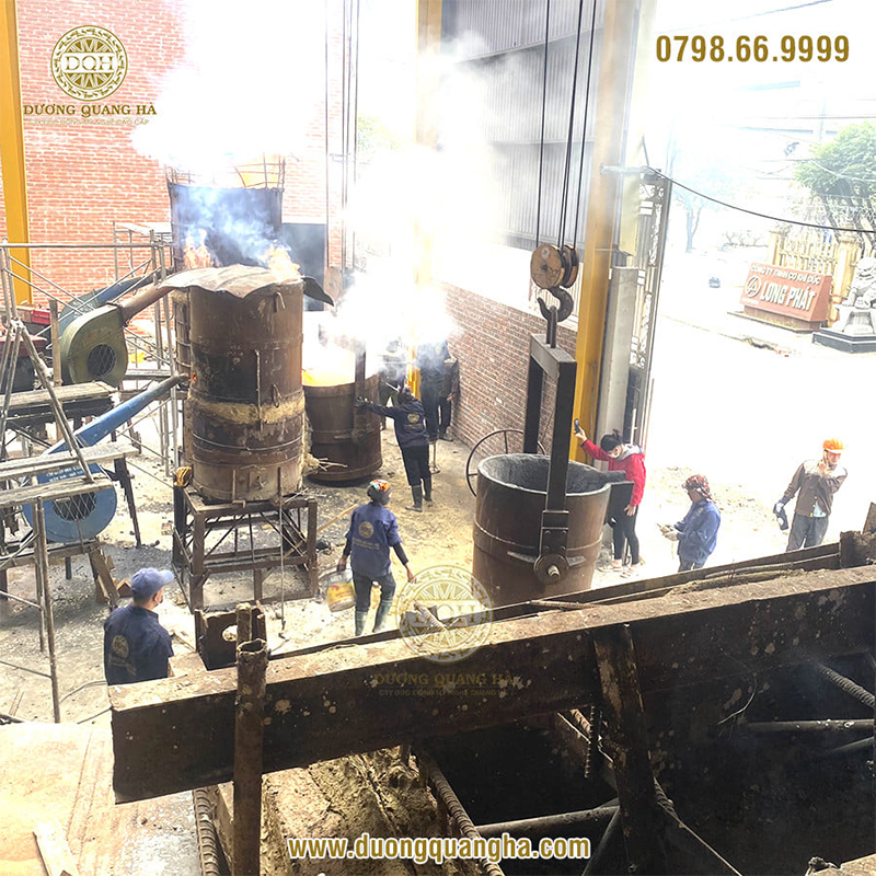 Các nghệ nhân sẽ tiến hành nung đồng ở 1200C cho đến khi đồng nóng chảy và chuyển hẳn sang dạng lỏng. Tùy thuộc vào mô hình được yêu cầu mà người thợ sẽ trộn các kim loại khác nhau theo yêu cầu và tăng nhiệt độ lên 1250C, tiếp tục nung đồng trong 10 giờ hoặc lâu hơn, tùy thuộc vào kích cỡ của bức tượng.