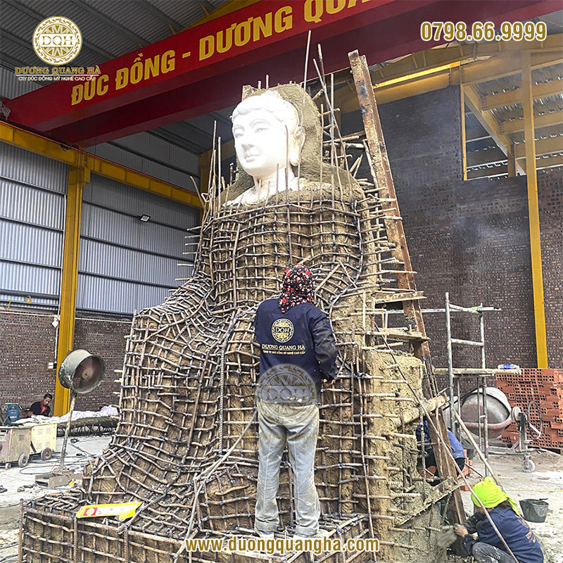 Đặc biệt, đối với các bức tượng Phật cỡ đại, quý khách hàng có thể lựa chọn dịch vụ đúc tượng Phật tại nơi. Đội ngũ nghệ nhân của Dương Quang Hà sẽ trực tiếp dựng khuôn, đúc chuông đồng, tượng Phật bằng đồng tại chính địa điểm khách hàng yêu cầu.