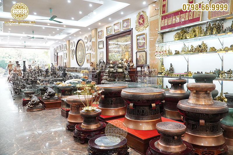 Đến với showroom, quý khách hàng sẽ được chiêm ngưỡng, tìm hiểu và lựa chọn đa dạng các sản phẩm như đồ đồng thờ cúng, tượng đồng, chuông đồng, trống đồng, tranh đồng, đồ đồng phong thuỷ, quà tặng bằng đồng…