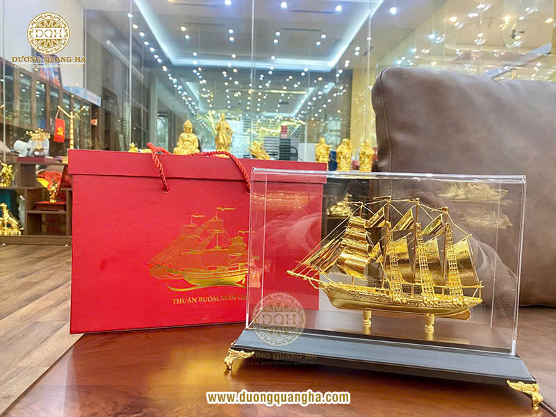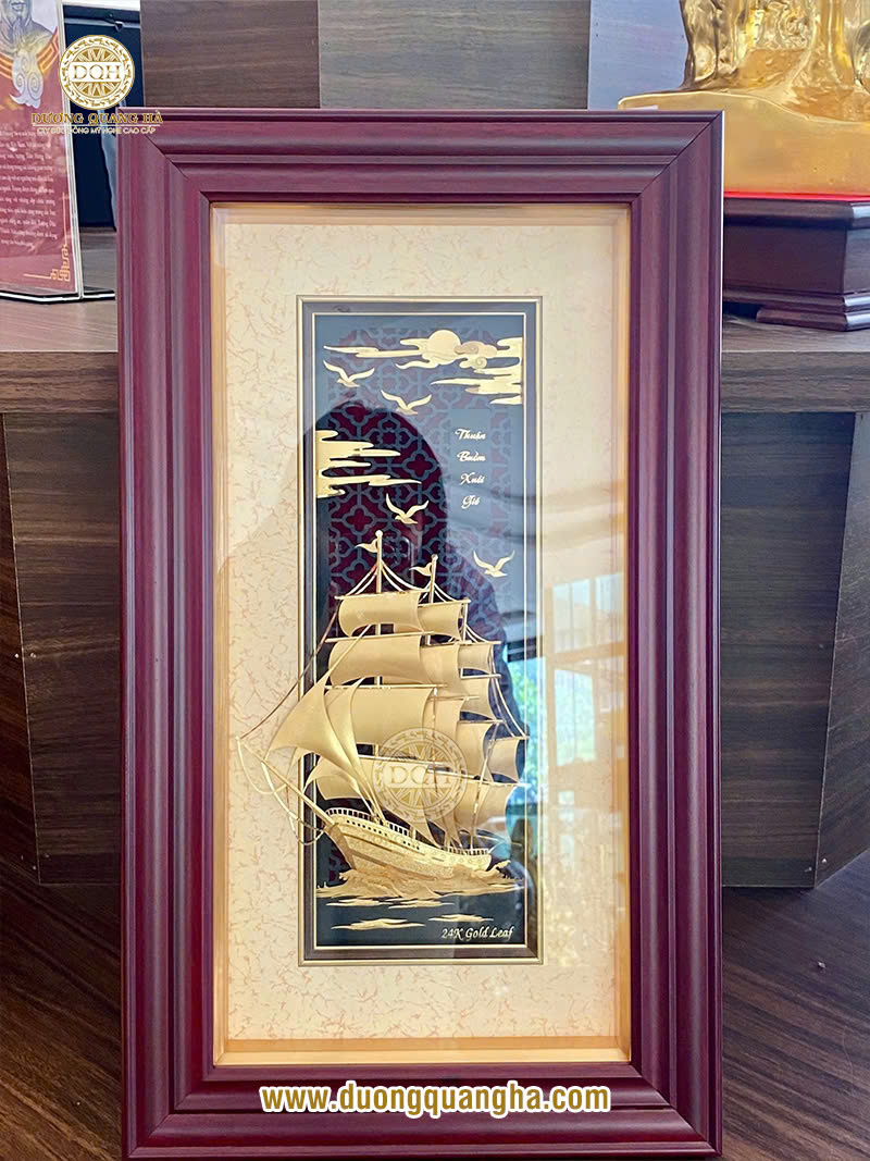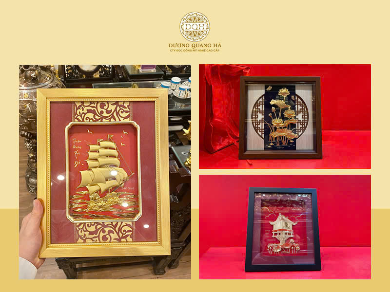 - Tranh đồng thủ công cao cấp: Những mẫu tranh chủ đề thuyền buồm, hoa sen, chùa Một Cột… được chế tác tinh xảo, dát vàng thủ công sang trọng, vừa mang đậm giá trị truyền thống, vừa có tính trang trí cao.