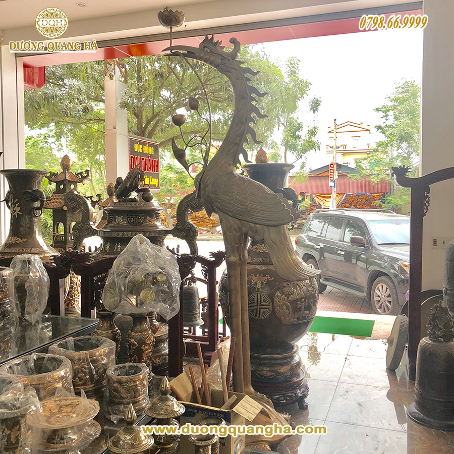 Hạc Thờ Đồng Đỏ Ngâm Sen Cao 3,2m