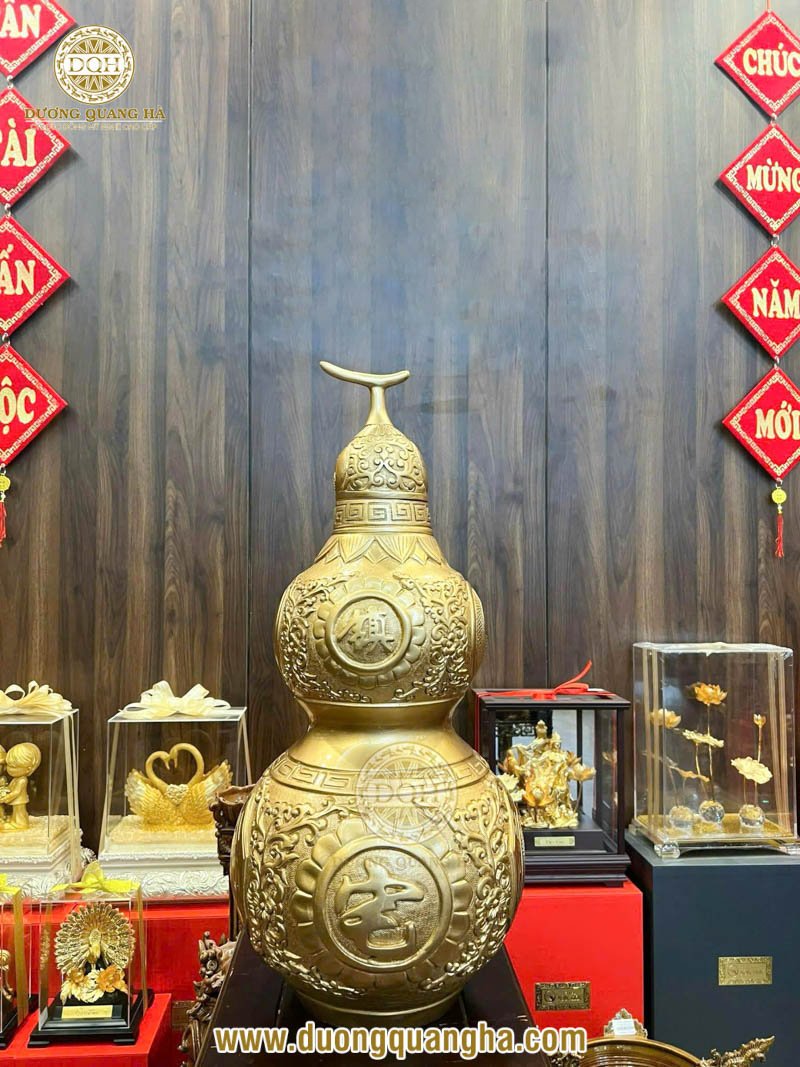 Mẫu hồ lô phong thủy bằng đồng chạm khắc nổi
