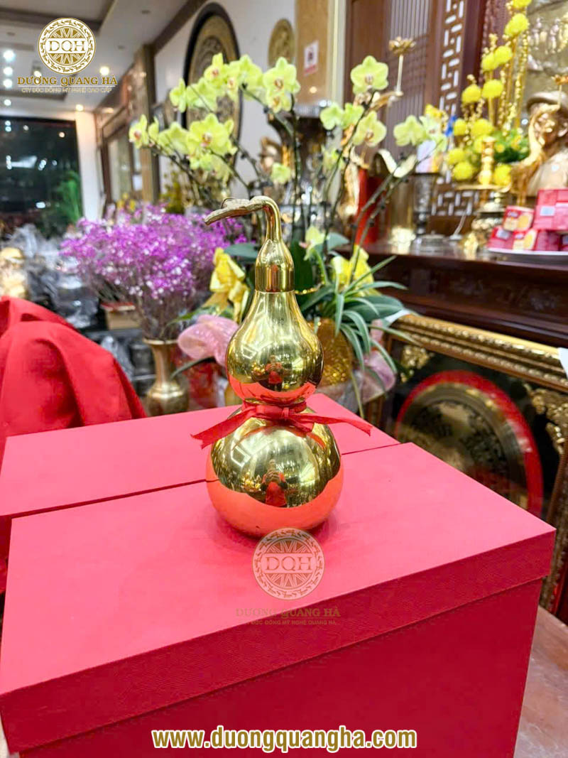 - Hồ lô bằng đồng: Là loại phổ biến và được ưa chuộng nhất do tính Kim mạnh, khả năng hóa giải sát khí tốt.