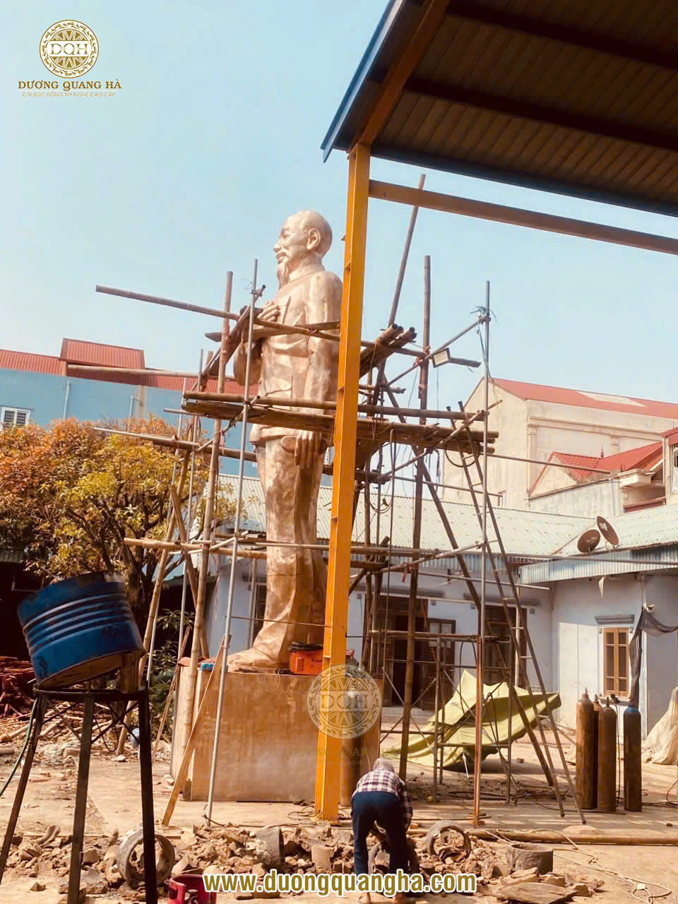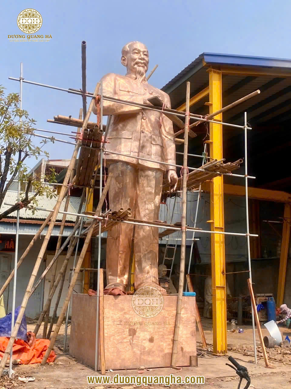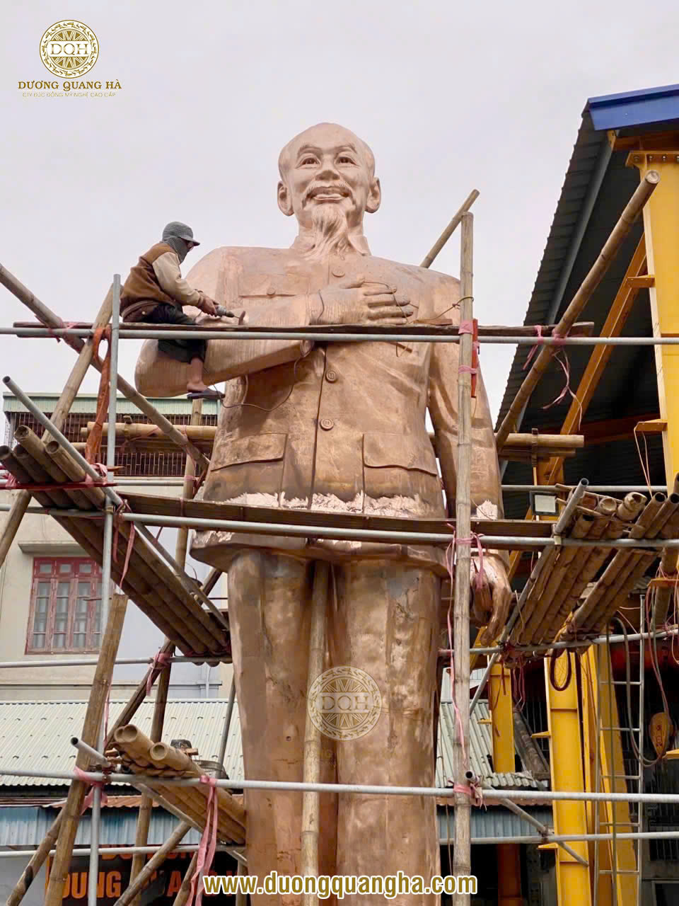 Những ngày này, tại xưởng Đúc đồng Dương Quang Hà, các nghệ nhân của chúng tôi đang miệt mài hoàn thiện công đoạn cuối cùng - làm màu cho pho tượng Bác Hồ cao 8m để kịp bàn giao đúng dịp 30/4 - 1/5.