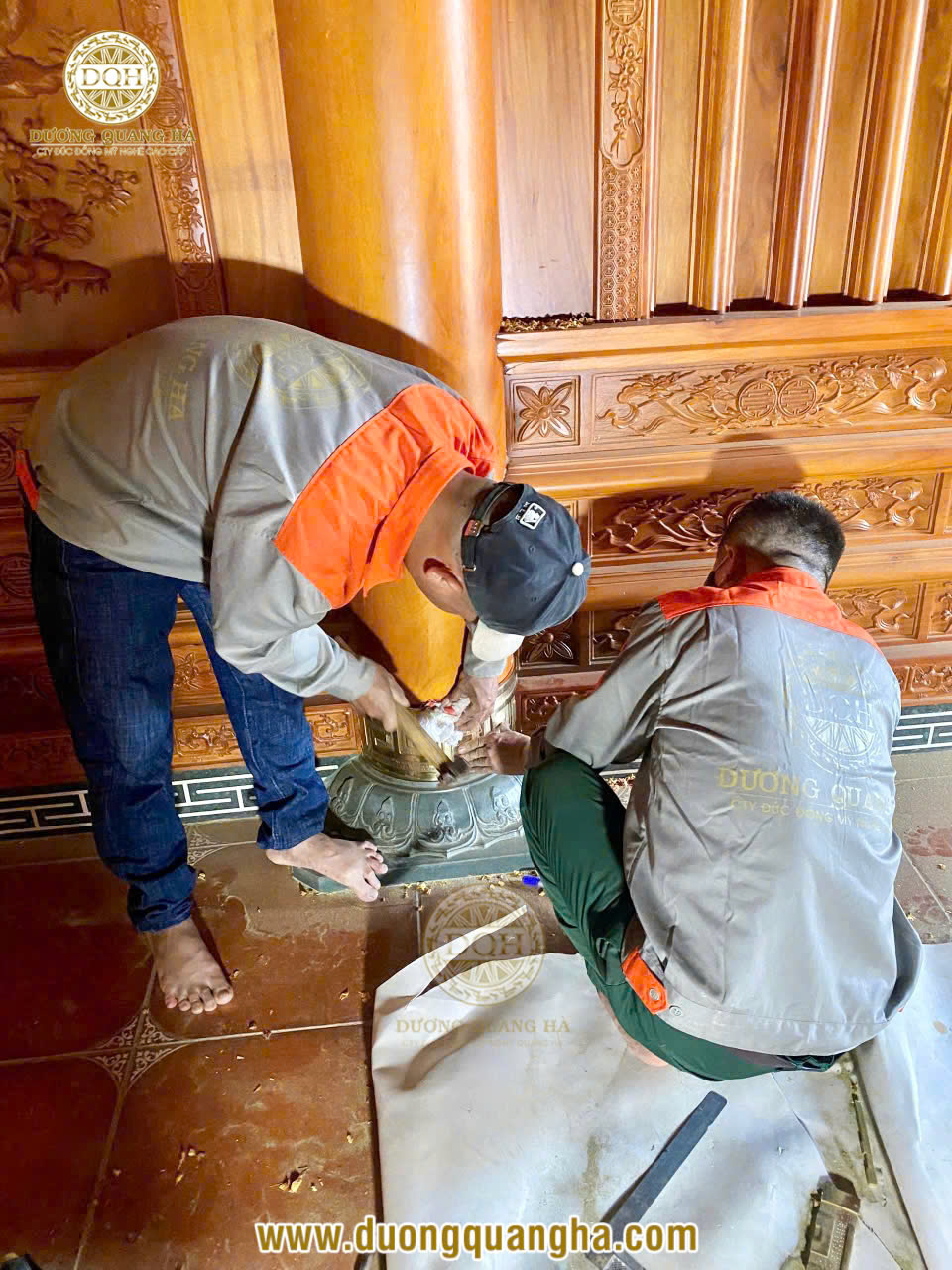 - Chân đế cột: Được chế tác kỳ công, tạo điểm nhấn vững chắc và mạnh mẽ cho kiến trúc tổng thể, làm nổi bật nét cổ kính và thiêng liêng nơi thờ tự.