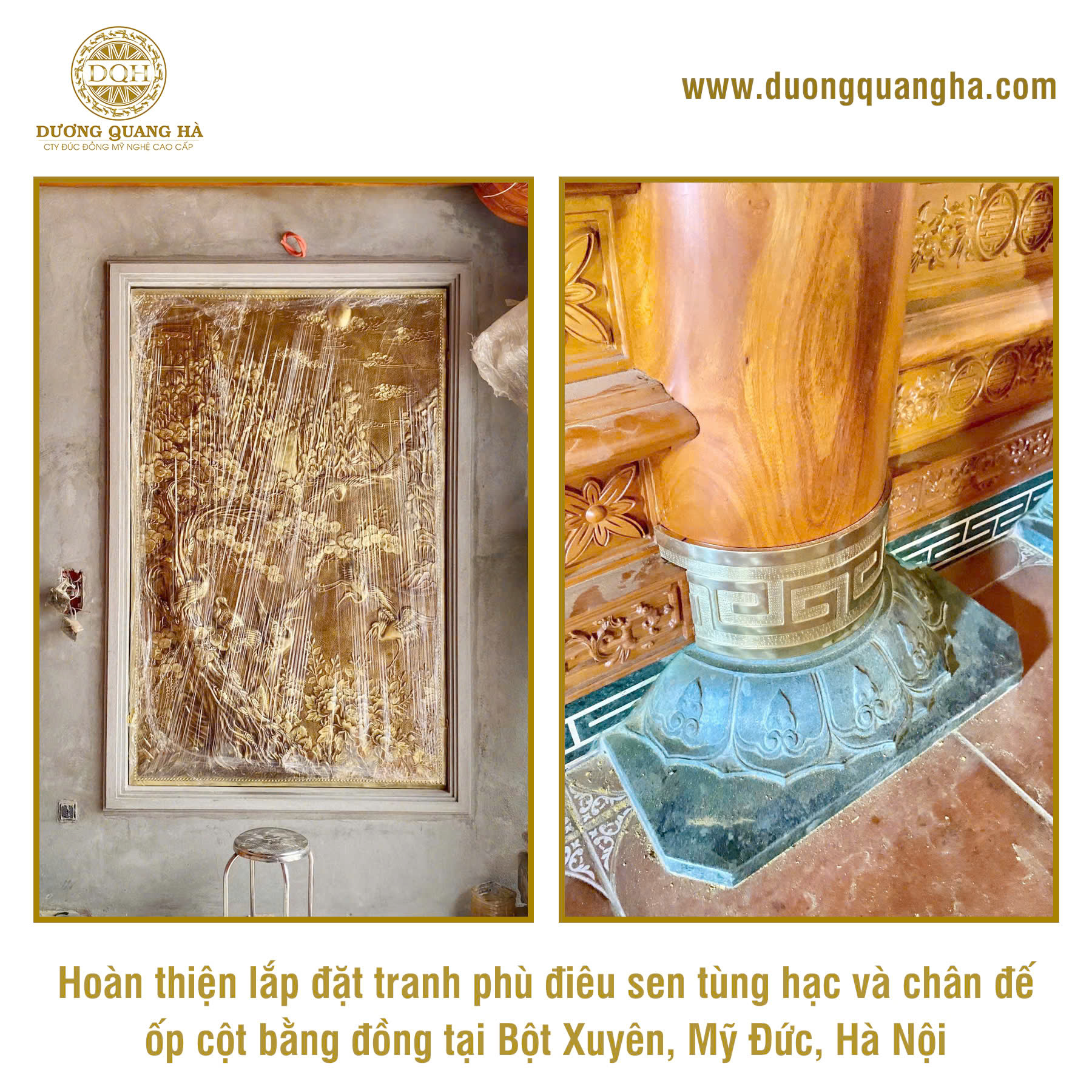 HOÀN THIỆN CÔNG TRÌNH LẮP ĐẶT TRANH PHÙ ĐIÊU SEN TÙNG HẠC VÀ CHÂN ĐẾ CỘT TẠI NHÀ THỜ HỌ Ở MỸ ĐỨC, HÀ NỘI