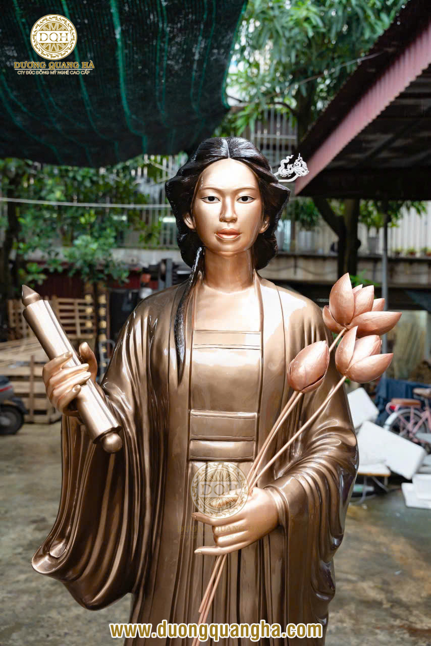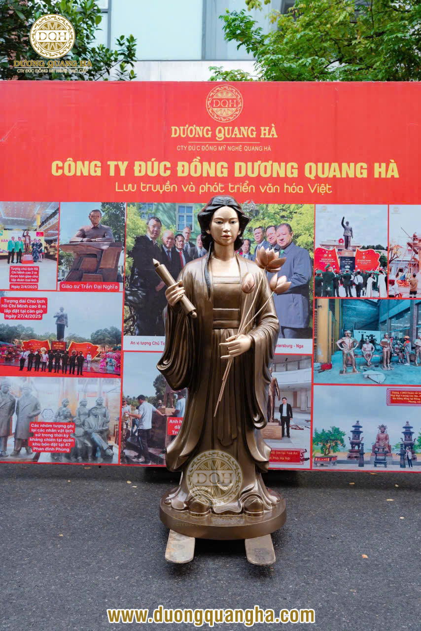 Tác phẩm cao 1m6, nặng 270kg, được tạo hình công phu bởi bàn tay và tâm huyết của các nghệ nhân, tái hiện trọn vẹn vẻ uy nghi, thanh tú, khí chất của vị nữ hoàng đế duy nhất, cuối cùng của triều đại nhà Lý (1224 - 1225).