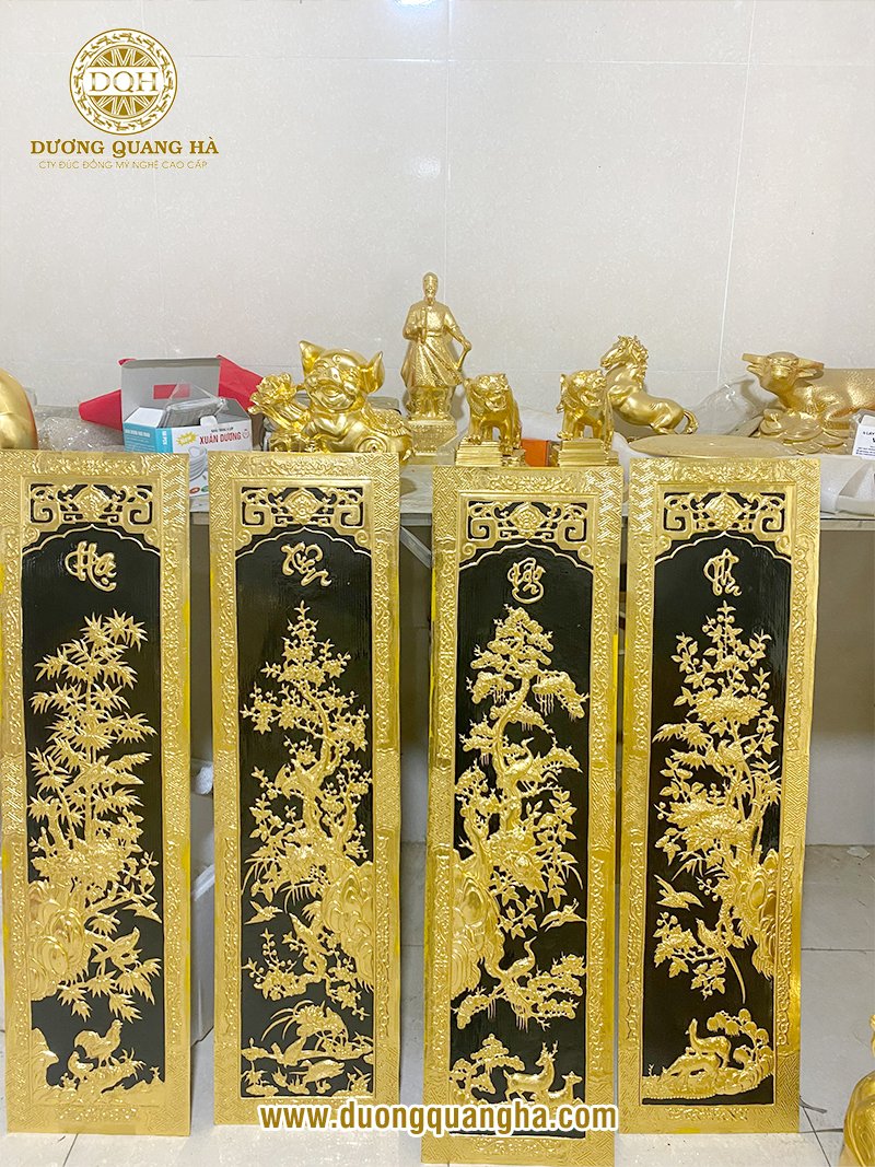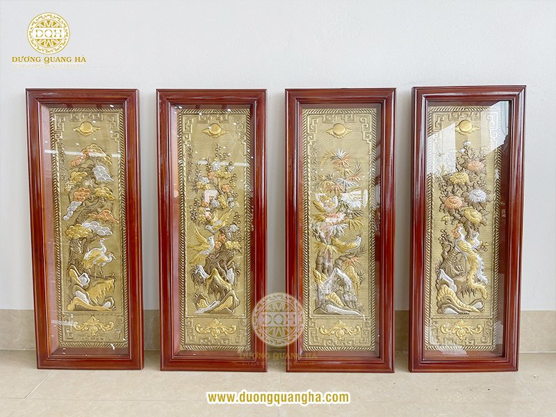 Bức tranh đồng Tứ quý là biểu tượng của 4 mùa trong năm, không chỉ mang lại giá trị thẩm mỹ cao cho không gian treo, mà còn chứa đựng nhiều ý nghĩa về sự phát tài. Mỗi loài cây, hoa trong tranh đều là những biểu tượng của phú quý, mang lại niềm hy vọng cho chủ nhân về sự thành công và thịnh vượng trong kinh doanh suốt cả năm.