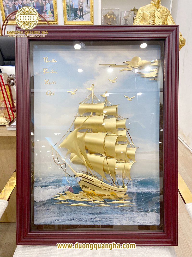Tranh đồng Thuận buồm xuôi gió tượng trưng cho sự kiên trì, dũng cảm đối đầu, vượt qua mọi khó khăn, thử thách. Đồng thời, nó cũng là lời chúc đại diện cho sự thành công và may mắn sẽ đến với gia chủ. Bức tranh Thuận buồm xuôi gió là món quà lý tưởng để chúc mừng khai trương cho một doanh nghiệp, cửa hàng mới.