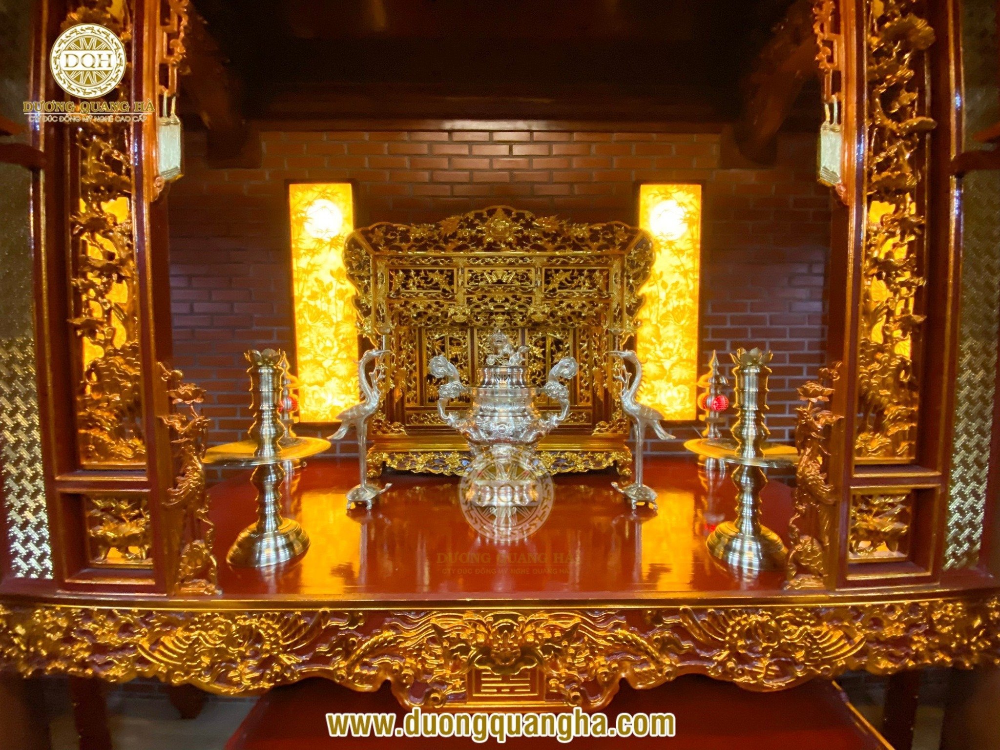 Các sản phẩm được chế tác hoàn toàn theo phương pháp đúc thủ công truyền thống từ nguyên liệu đồng vàng cát tút cao cấp với giá trị thẩm mỹ cao, chất lượng tốt, giúp khách hàng an tâm sử dụng lâu dài. Bộ đồ thờ bằng đồng catut bày trí cho không gian thờ cúng tổ tiên thêm sang trọng và linh thiêng hơn.
