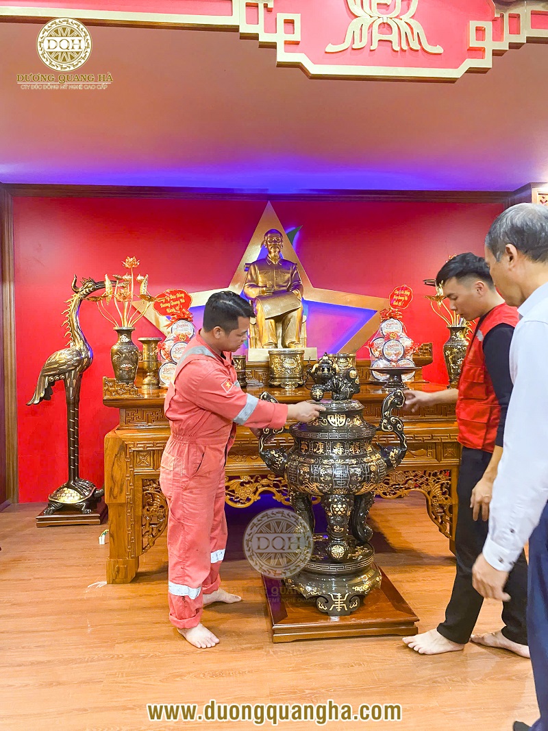 Ngày hôm qua, đội ngũ Đúc đồng Dương Quang Hà đã hoàn thiện công tác vận chuyển và lắp đặt phòng thờ Chủ tịch Hồ Chí Minh tại khu lưu niệm của Công ty Dầu khí Sông Hồng (Tiền Hải, Hưng Yên - Thái Bình cũ).