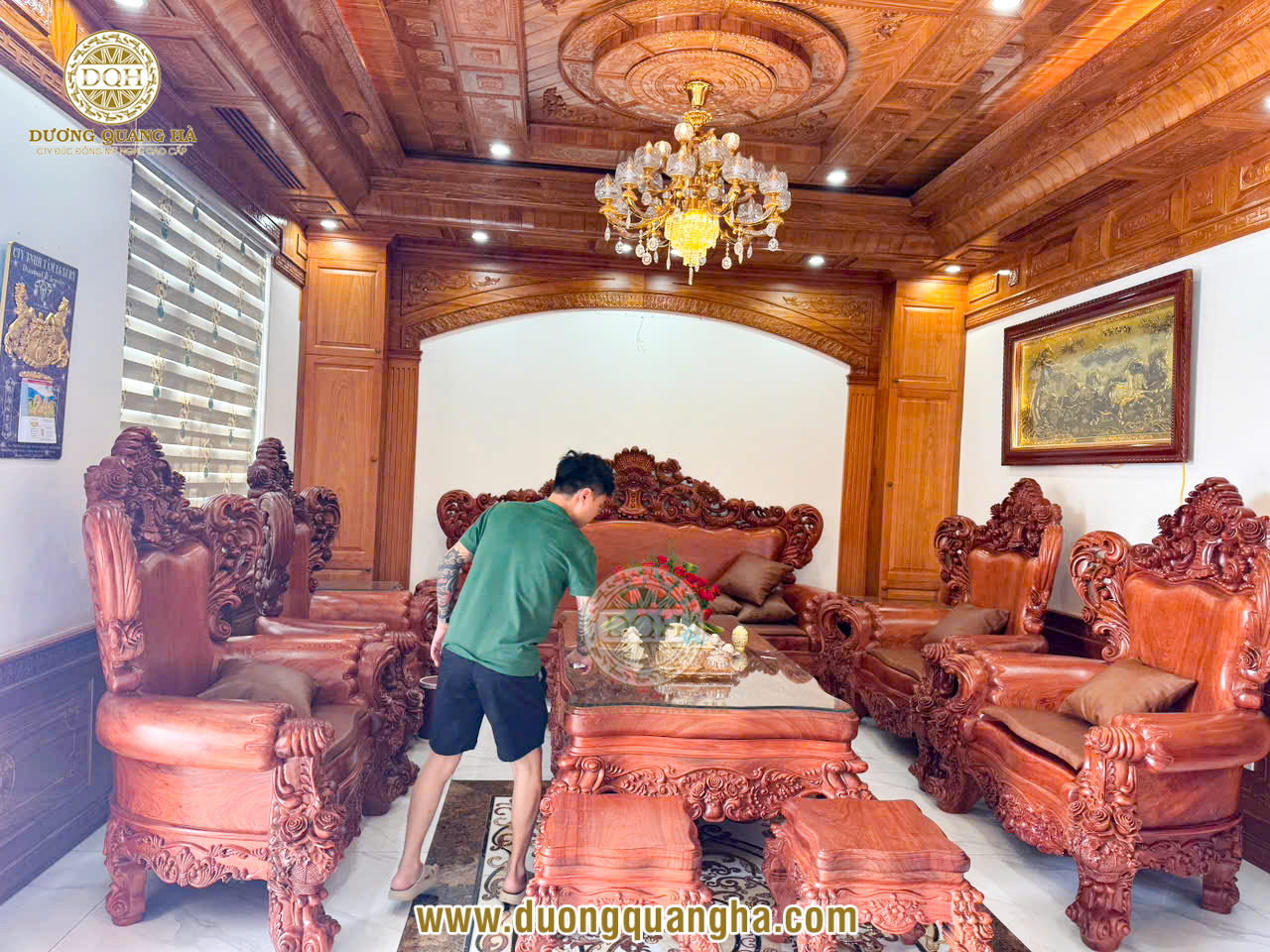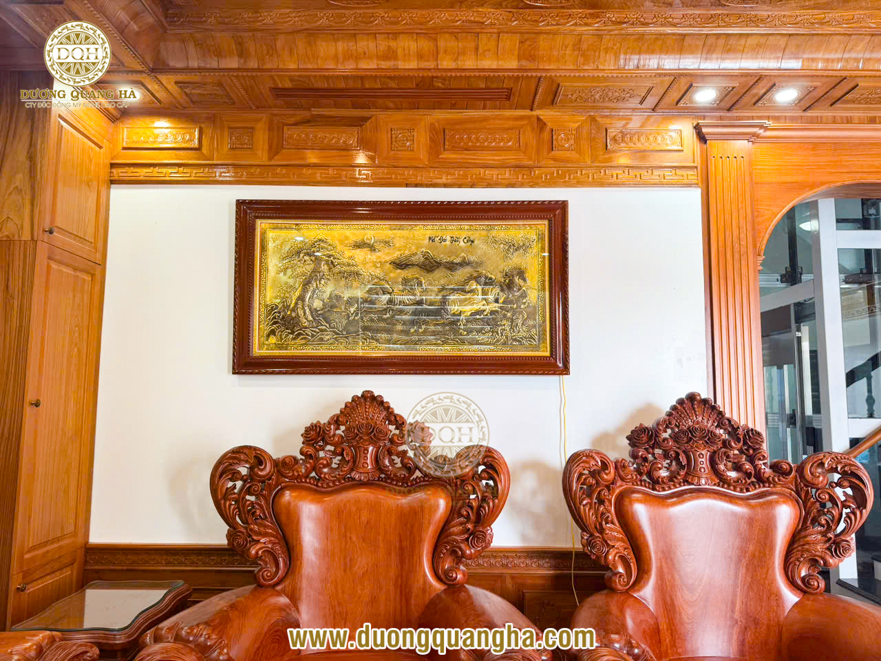LẮP ĐẶT TRANH MÃ ĐÁO THÀNH CÔNG GIẢ CỔ 1M7 x 90CM TẠI CHƯƠNG MỸ - HÀ NỘI