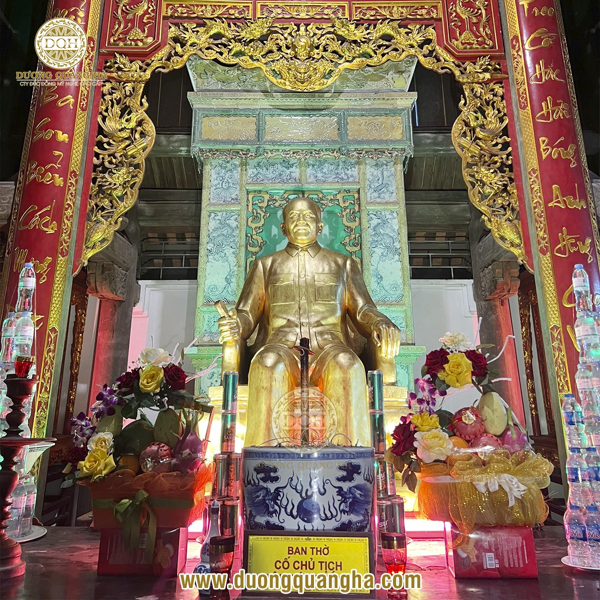 Pho tượng được chúng tôi chế tác trực tiếp tại tại đền thờ Chủ tịch Tôn Đức Thắng. Với hơn 20 năm kinh nghiệm đúc đồng thủ công, diện mạo hình khối của Bác được Đúc đồng Dương Quang Hà làm mẫu tiêu chuẩn nhất, thần thái nhất.