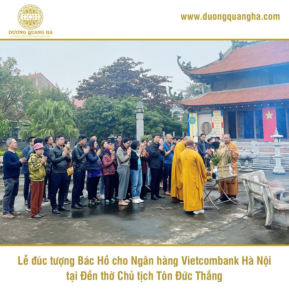 Được sự tin tưởng và lựa chọn của ban lãnh đạo ngân hàng Vietcombank Hà Nội, đội ngũ nhân sự của Đúc đồng Dương Quang Hà đã tiến hành thành công nghi lễ đúc tượng đồng Bác Hồ.