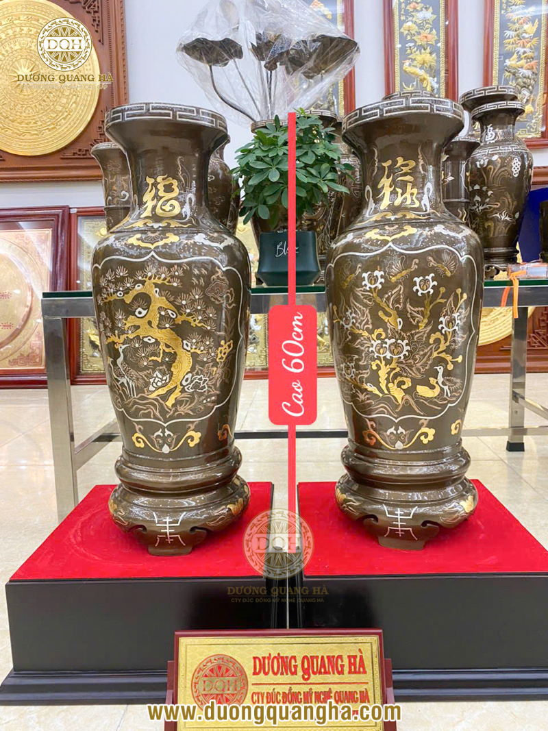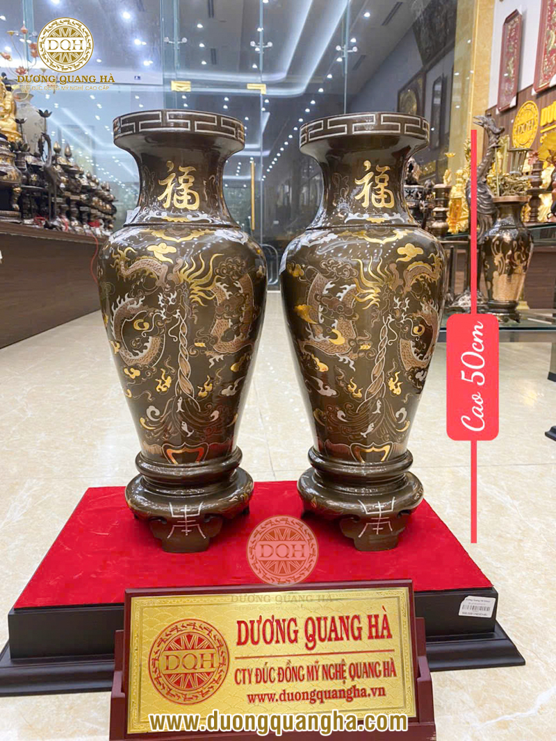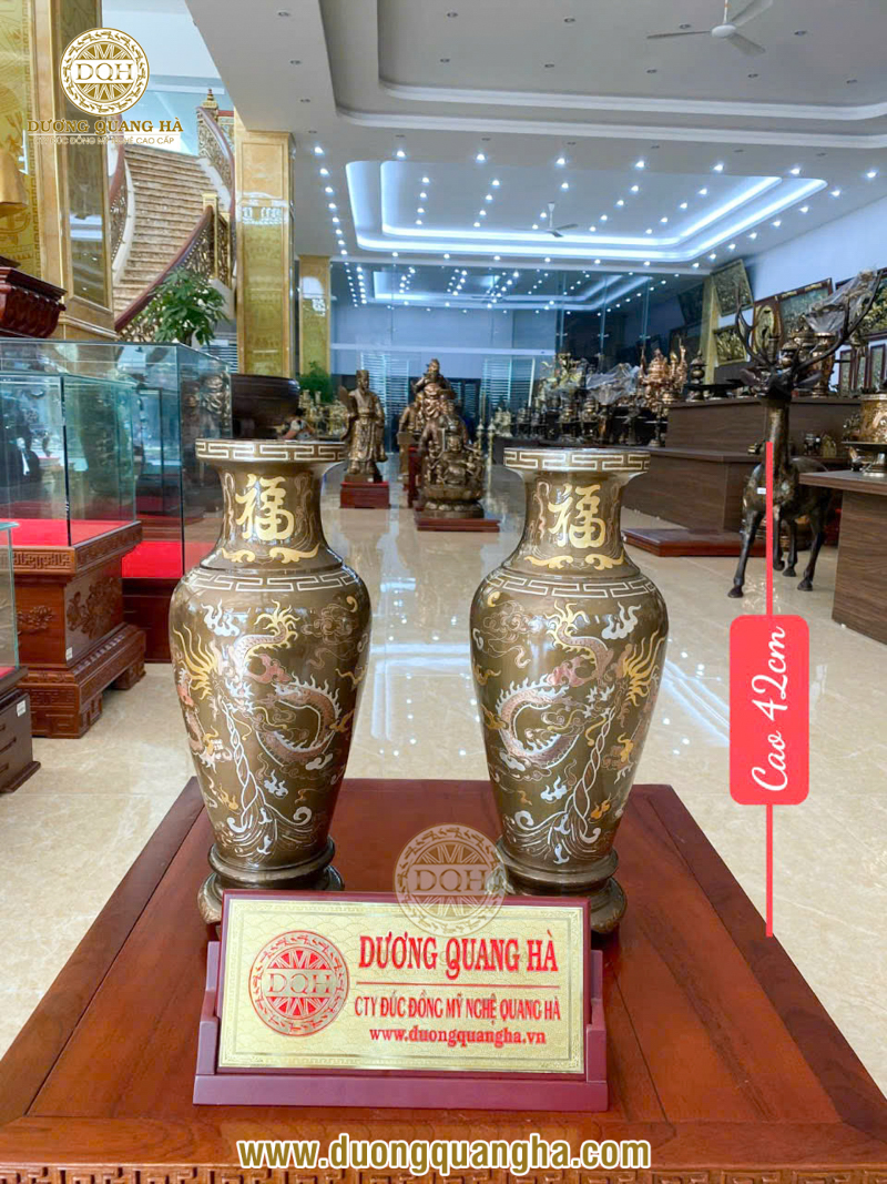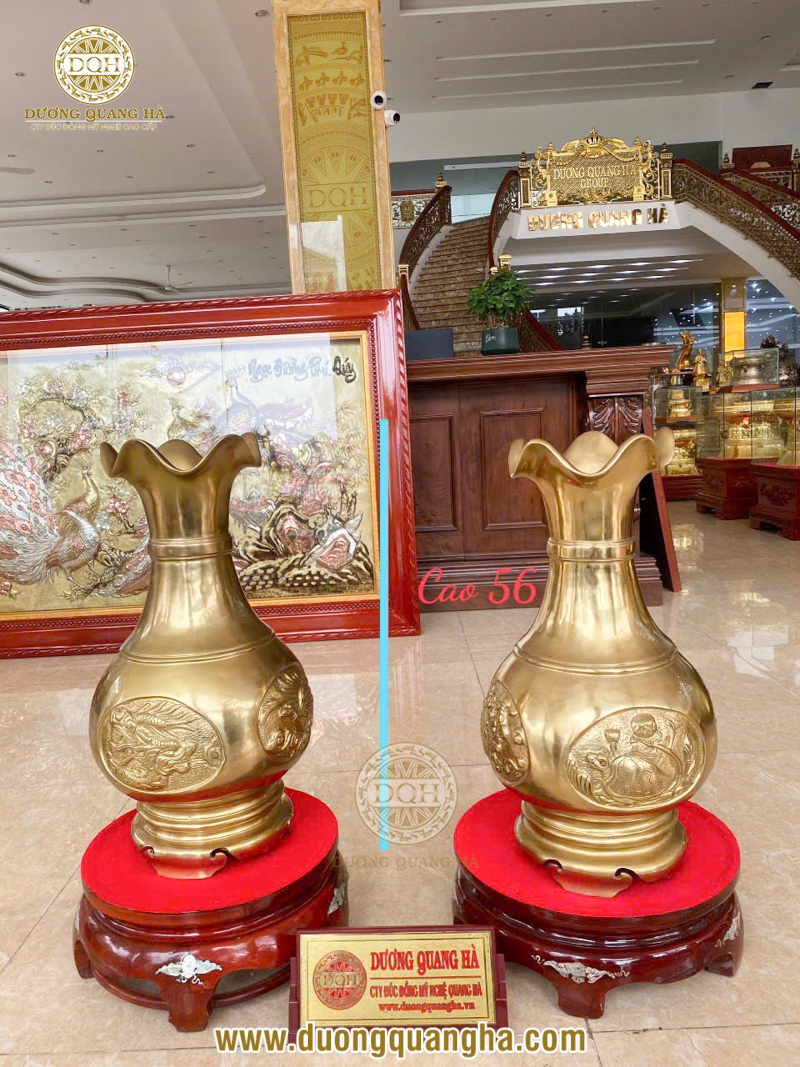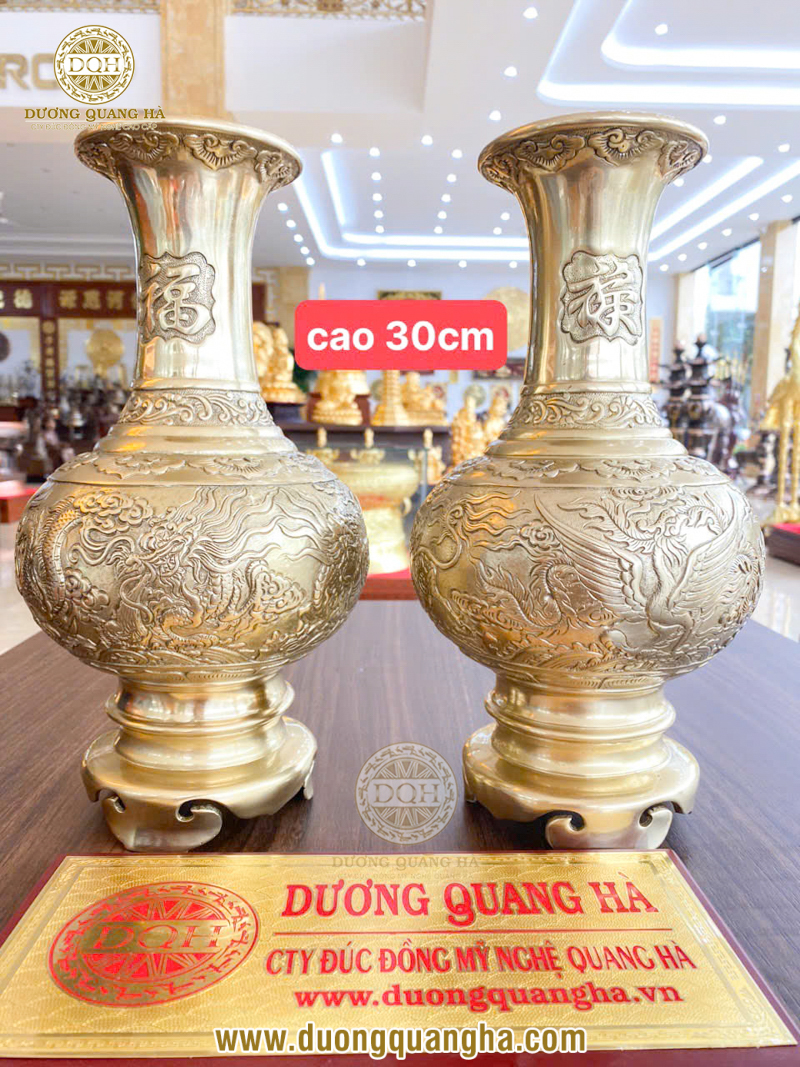 - Gắn liền với những lời chúc tốt đẹp: Các họa tiết thường thấy trên lọ hoa đồng như rồng, phượng, hoa sen, chữ Phúc - Lộc - Thọ đều mang thông điệp may mắn, hạnh phúc, thịnh vượng và bình an. Điều này càng làm tăng giá trị tâm linh khi gia chủ đặt lọ hoa trên bàn thờ.