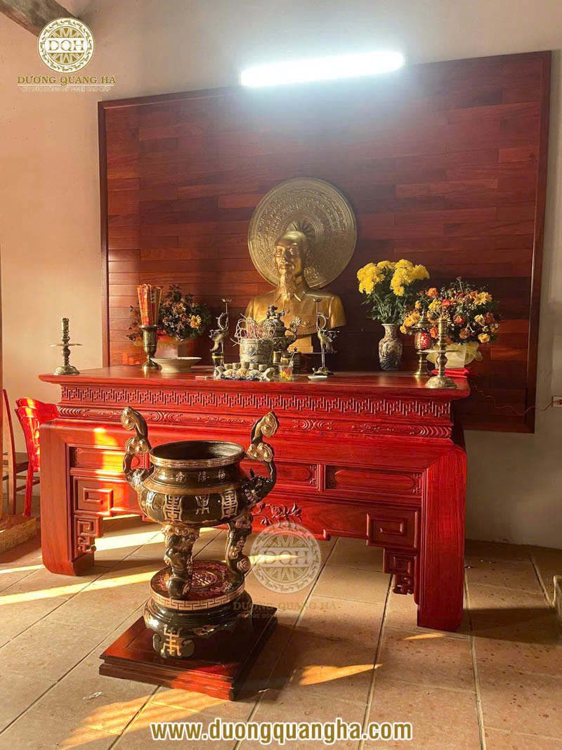 - Lư đồng đặt bàn thờ: Thường được làm nhỏ gọn, lư đồng đặt bàn thờ còn được gọi là đỉnh đồng thờ cúng, dùng để đốt hương, trầm hương. Đây là loại lư đồng phổ biến trong gia đình, nhất là những gia đình có bàn thờ tổ tiên.