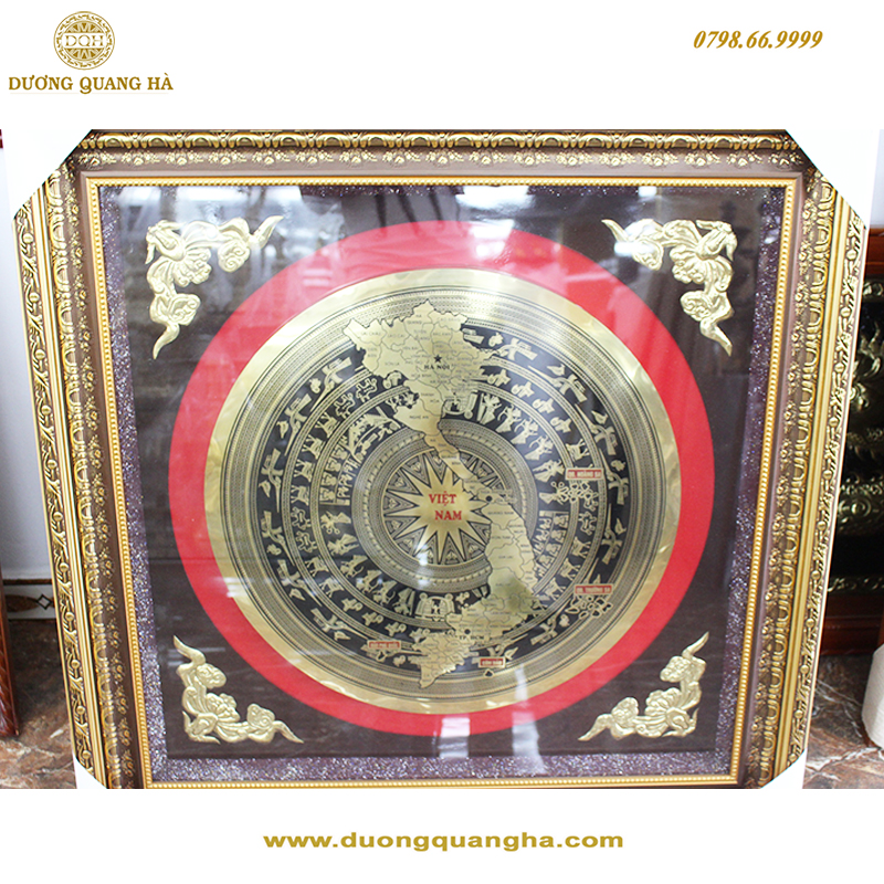 Mặt trống đồng có bản đồ ăn mòn 90cm khung kính