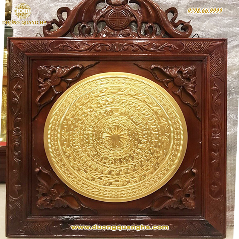 Kích thước sản phẩm: Khung gỗ gụ vuông 107cm – mặt trống dát vàng 9999 đường kính 80cm