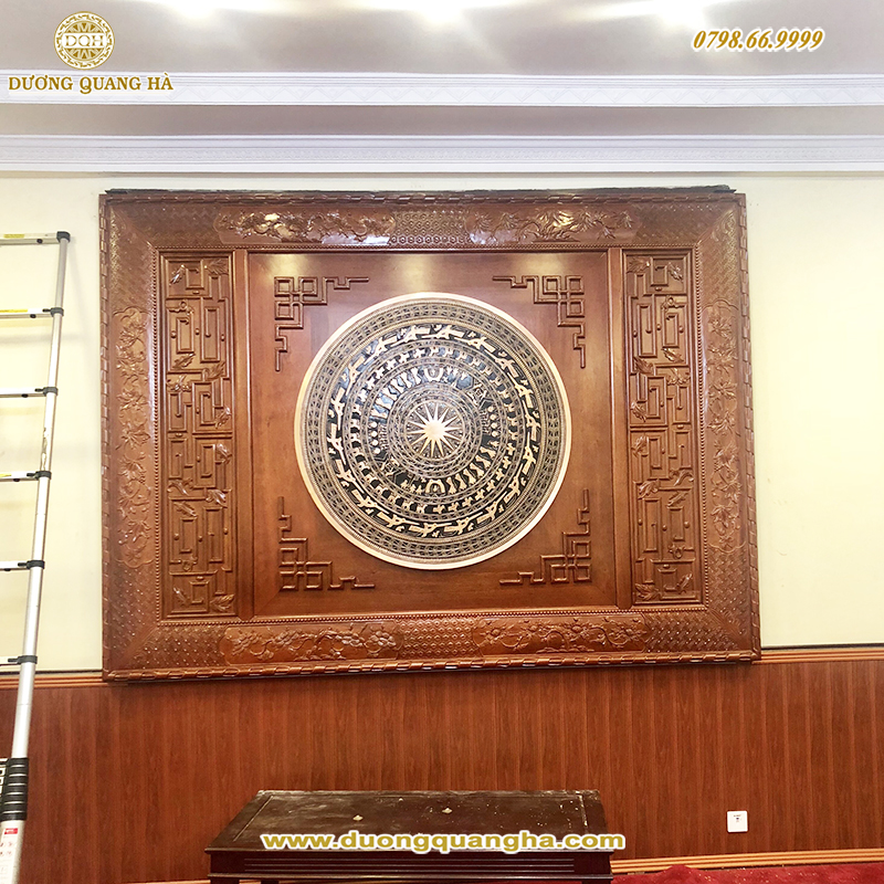 Tên gọi sản phẩm: Mặt trống đồng khung gỗ gụ