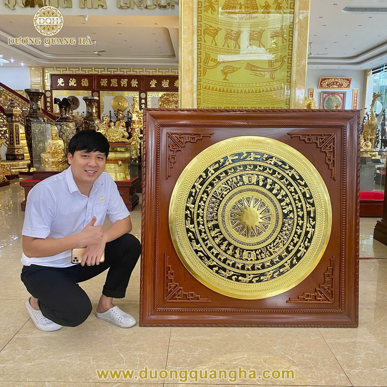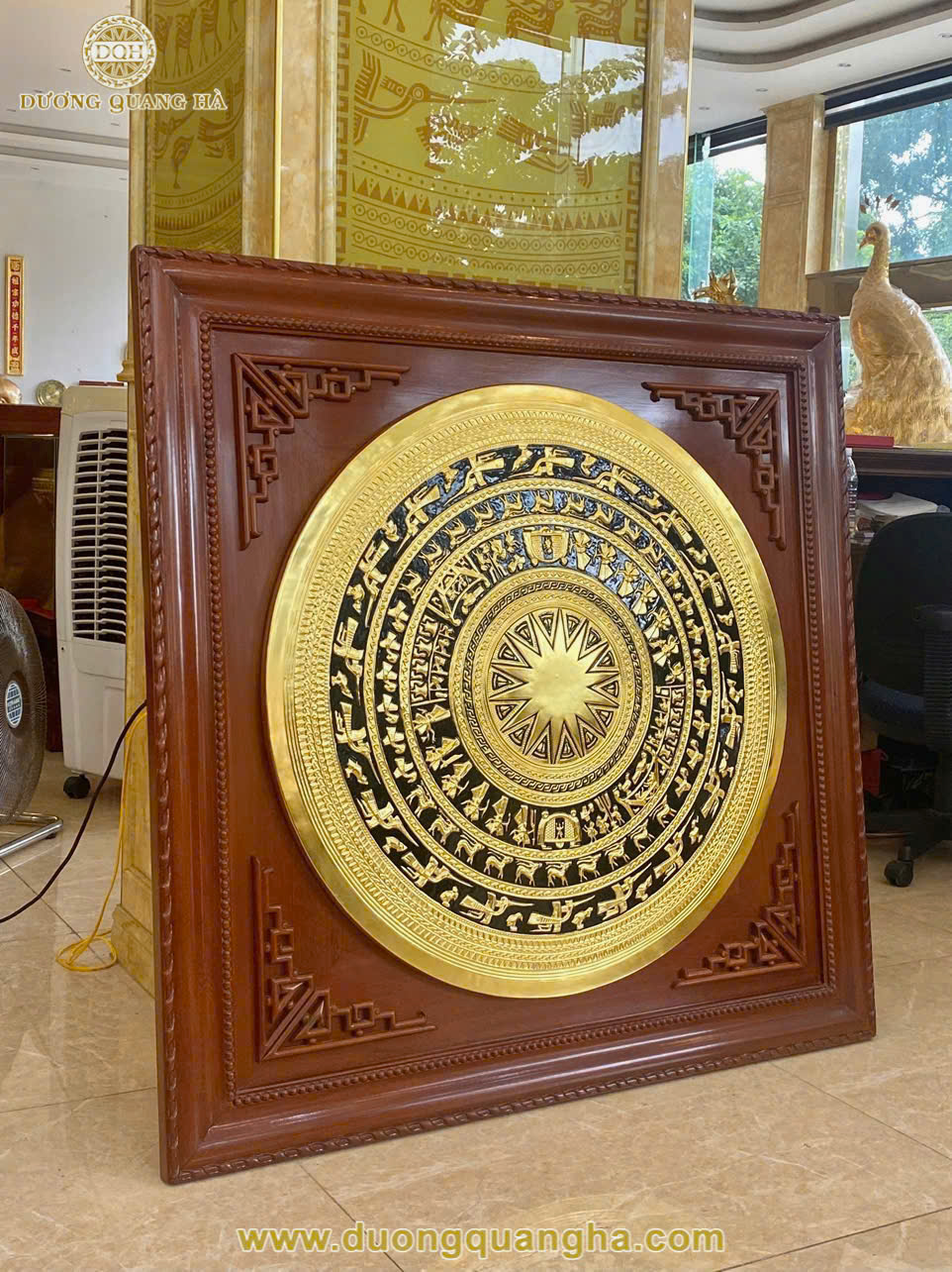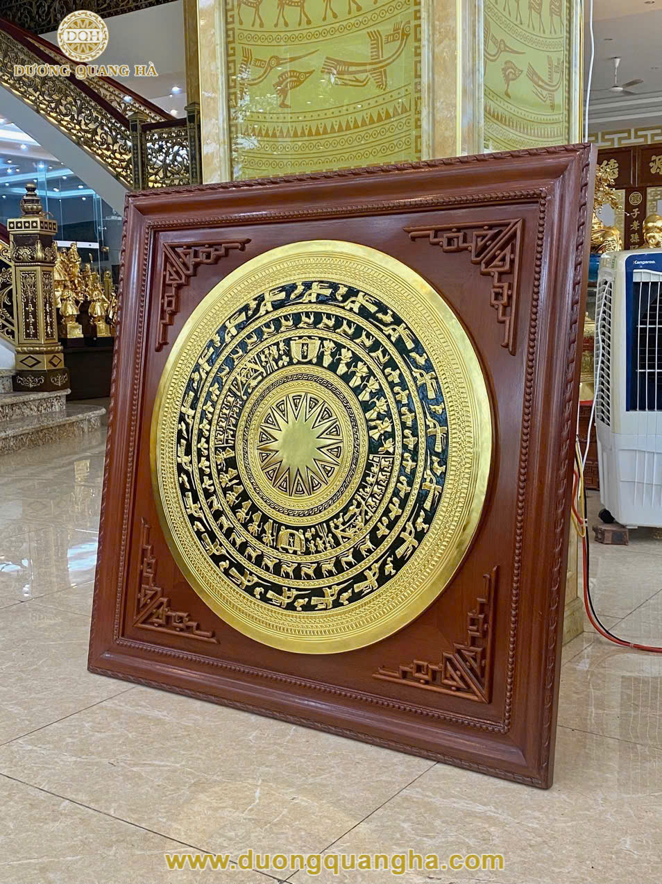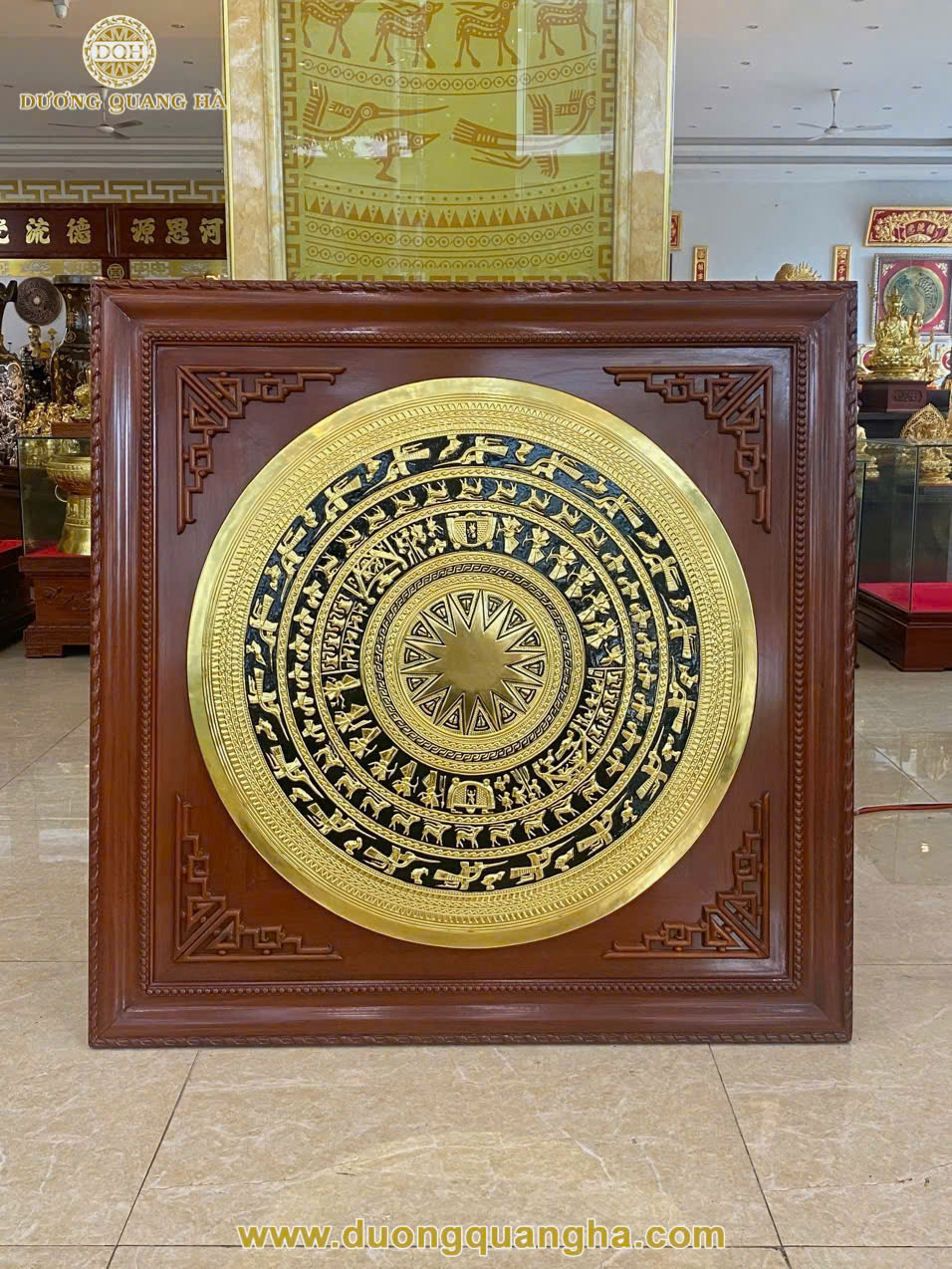 Chất liệu: mặt trống đồng vàng dát vàng, khung gỗ gụ