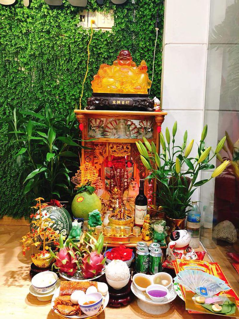 Khi đặt bàn thờ có tượng Thần Tài, bạn cần chú ý phía sau lưng bàn thờ phải là vách tường chắc chắn để tài vận có thể tụ được. Trường hợp không thể đặt bàn thờ dựa lưng vào tường thì cần tạo vách để chắn góc nhọn, không đặt bàn thờ ở chỗ cửa sổ hay chỗ có đục lỗ.