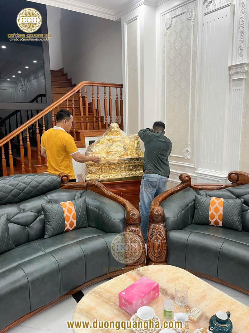 Ngoài ra, chất liệu cũng là yếu tố quan trọng không thể bỏ qua. Nếu chọn tượng đồng, bạn nên ưu tiên đồng nguyên chất để đảm bảo độ bền và vẻ đẹp lâu dài. Với tượng gỗ, gỗ tự nhiên với vân sắc nét, không bị nứt hay mối mọt sẽ mang đến giá trị cao cả về thẩm mỹ lẫn tâm linh. Còn đối với tượng đá, tốt nhất là chọn đá nguyên khối với màu sắc đồng đều, mang lại cảm giác vững chắc và tinh khiết.