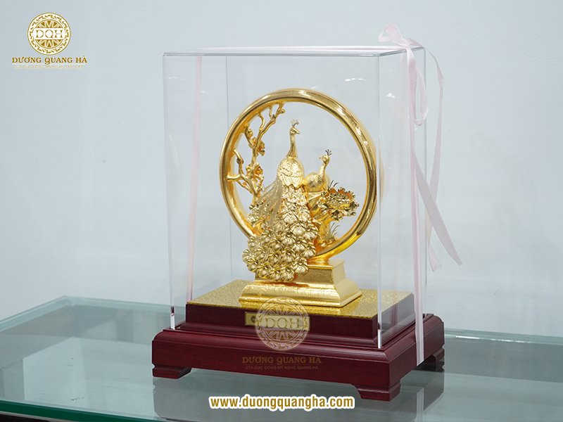 Tượng đồng con công mạ vàng