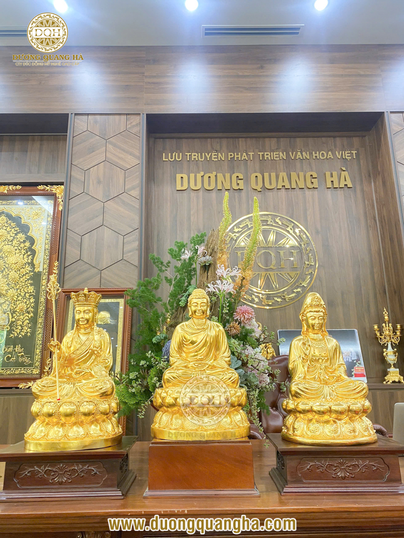 Bộ tượng Phật Tam Thế Phật được đặt song song nhau, thể hiện vòng luân hồi bất tận, lời nhắc nhở con người luôn sống thiện, hướng Phật.