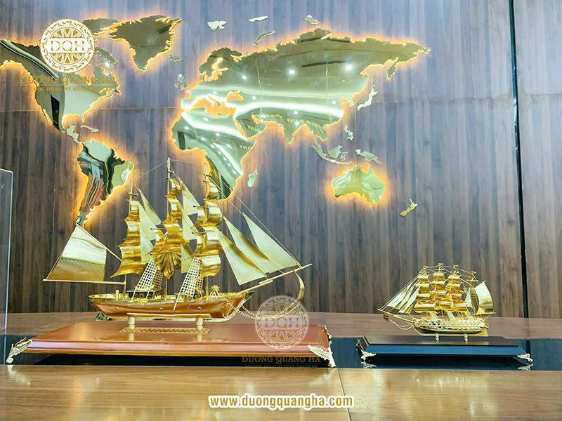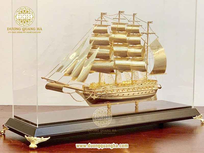 Khi được mạ vàng, chiếc thuyền buồm trở nên sang trọng và đẳng cấp hơn. Màu vàng là biểu tượng của sự giàu có, thịnh vượng, đồng thời còn gợi nhắc đến ánh sáng và sự cao quý, mang ý nghĩa tốt đẹp trong phong thủy. Chính vì vậy, thuyền buồm mạ vàng thường được lựa chọn làm quà tặng trong các dịp quan trọng như khai trương, tân gia hoặc chúc mừng thăng chức.