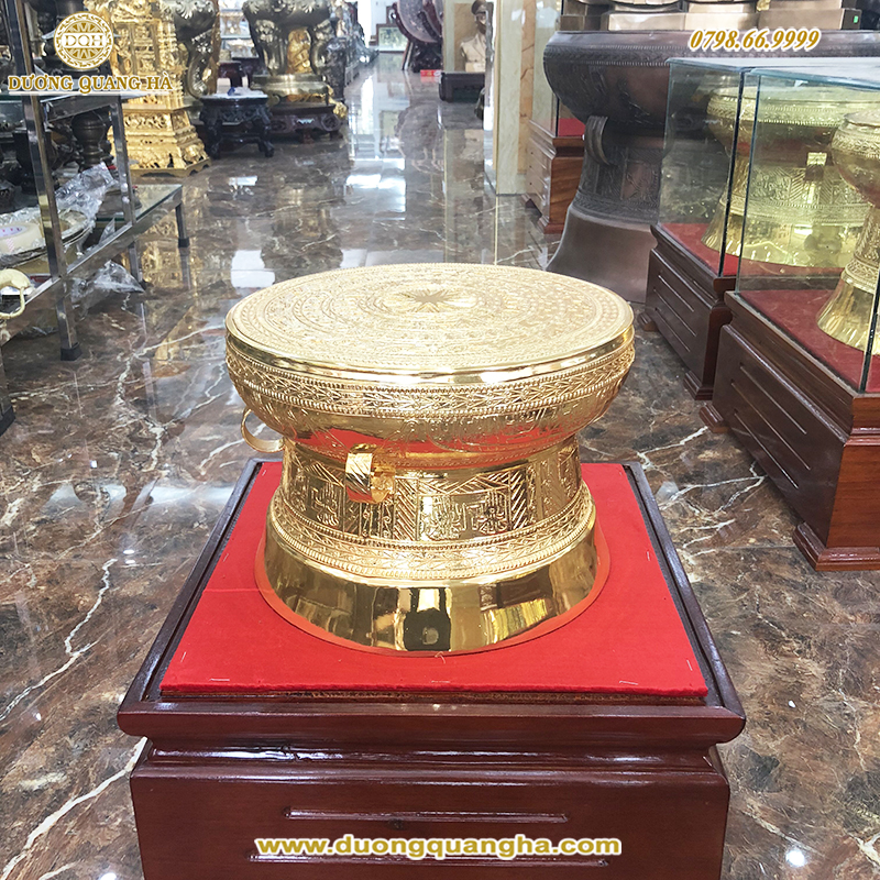 Tên gọi sản phẩm: Quả trống đúc bằng đồng đỏ dát vàng 9999