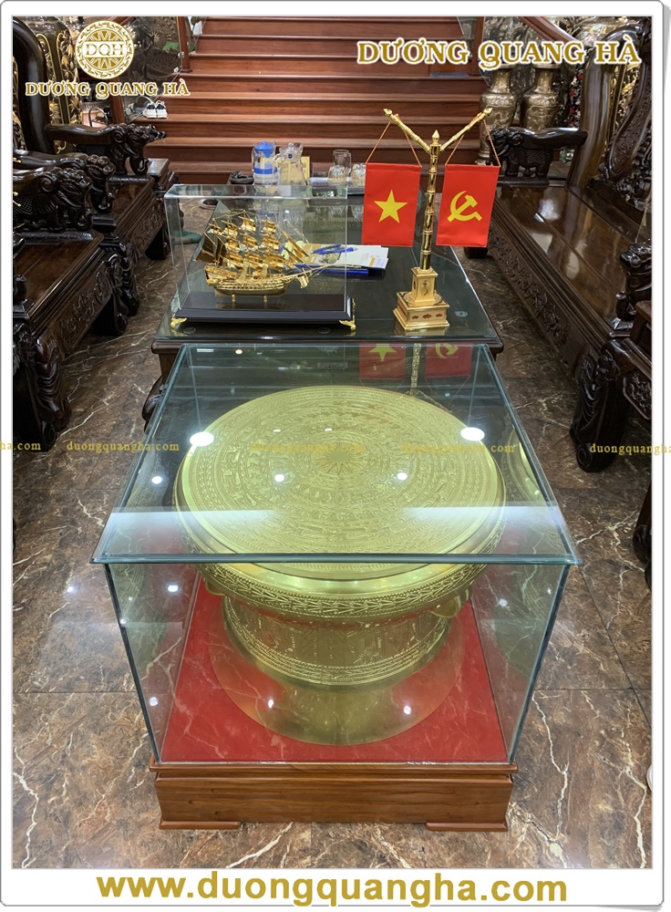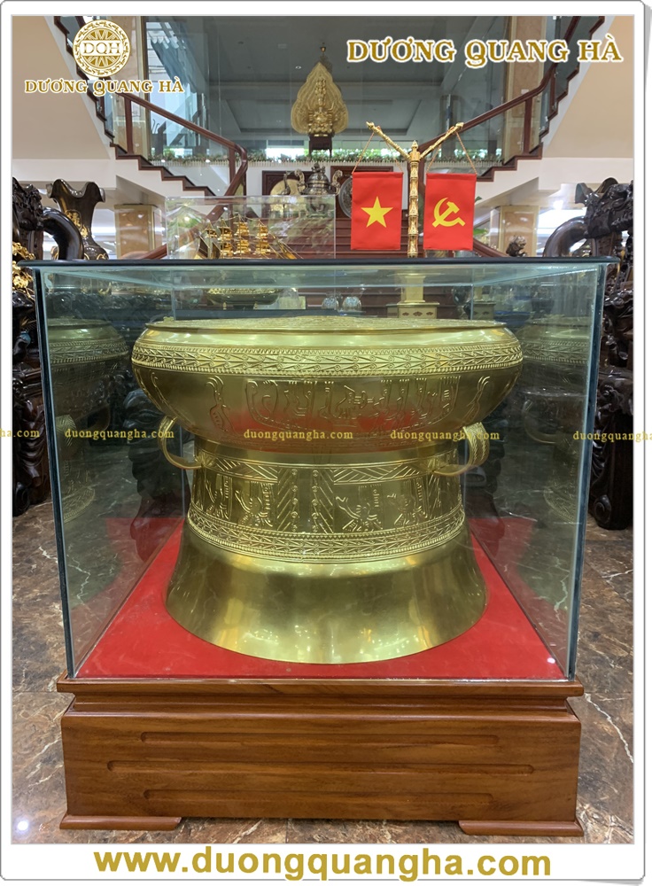 Tên sản phẩm : Quả Trống Đường Kính 50cm Đúc Đồng Đỏ Dát Vàng 9999