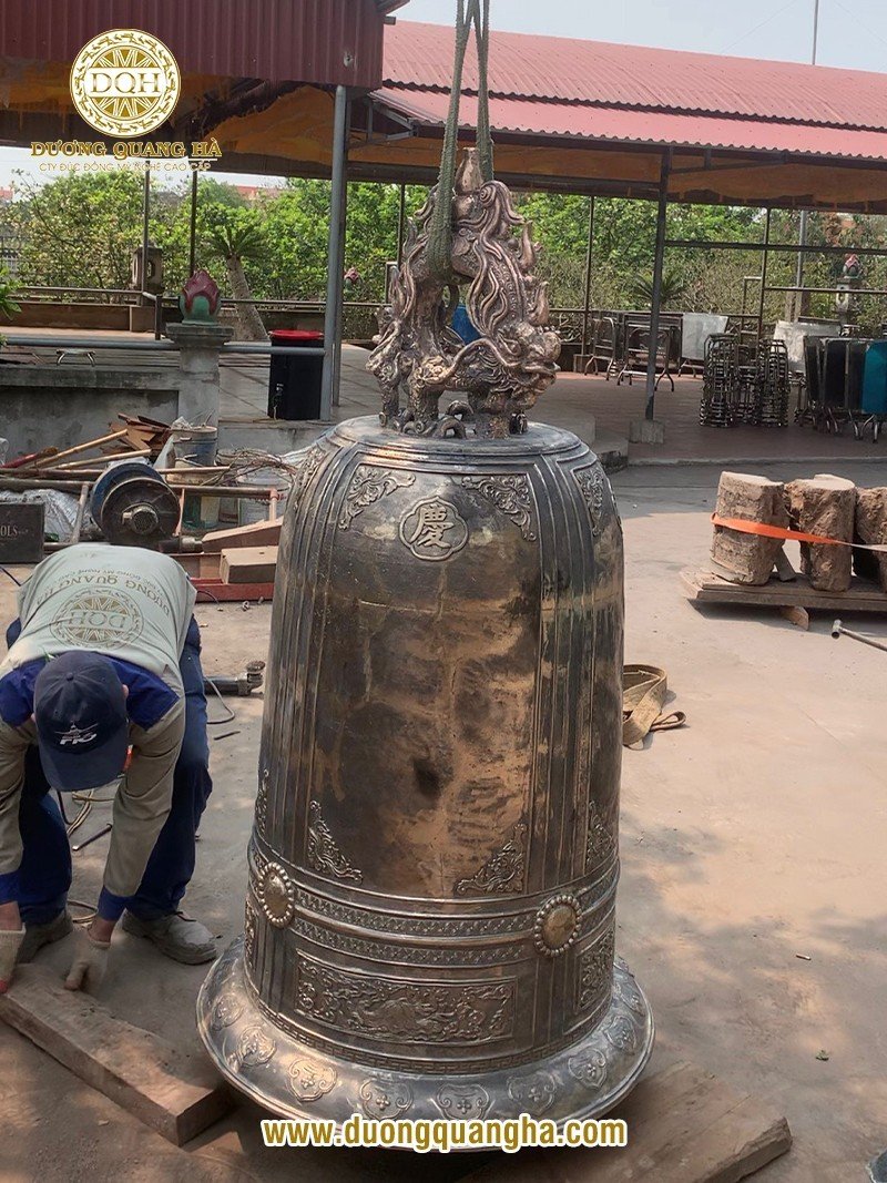 Quá trình đúc chuông đồng tại Đúc đồng Dương Quang Hà được thực hiện hoàn toàn thủ công. Thời gian hoàn thiện chuông phụ thuộc vào kích thước và khối lượng của mỗi mẫu chuông, được tiến hành một cách tỉ mỉ, chính xác bởi những người thợ lành nghề nhất.