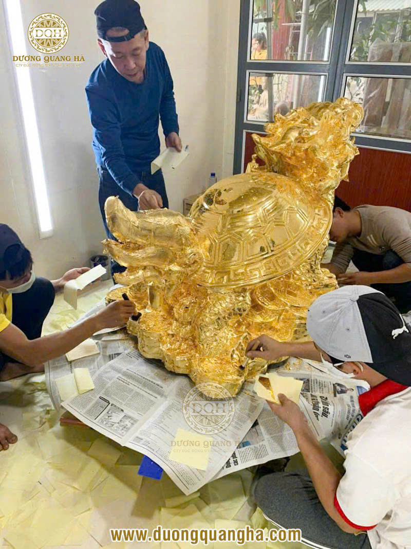 Quá trình dát vàng tượng rùa đầu rồng