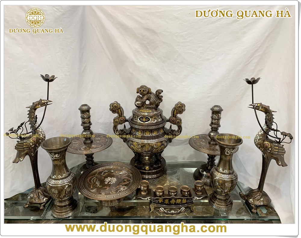 Tên gọi sản phẩm: Bộ đồ thờ khảm ngũ sắc trên ban thờ