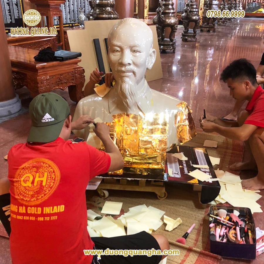 Tên gọi sản phẩm: Thi công dát vàng 9999 tượng Bác Hồ bán thân tại đền thờ Anh Hùng Liệt Sỹ