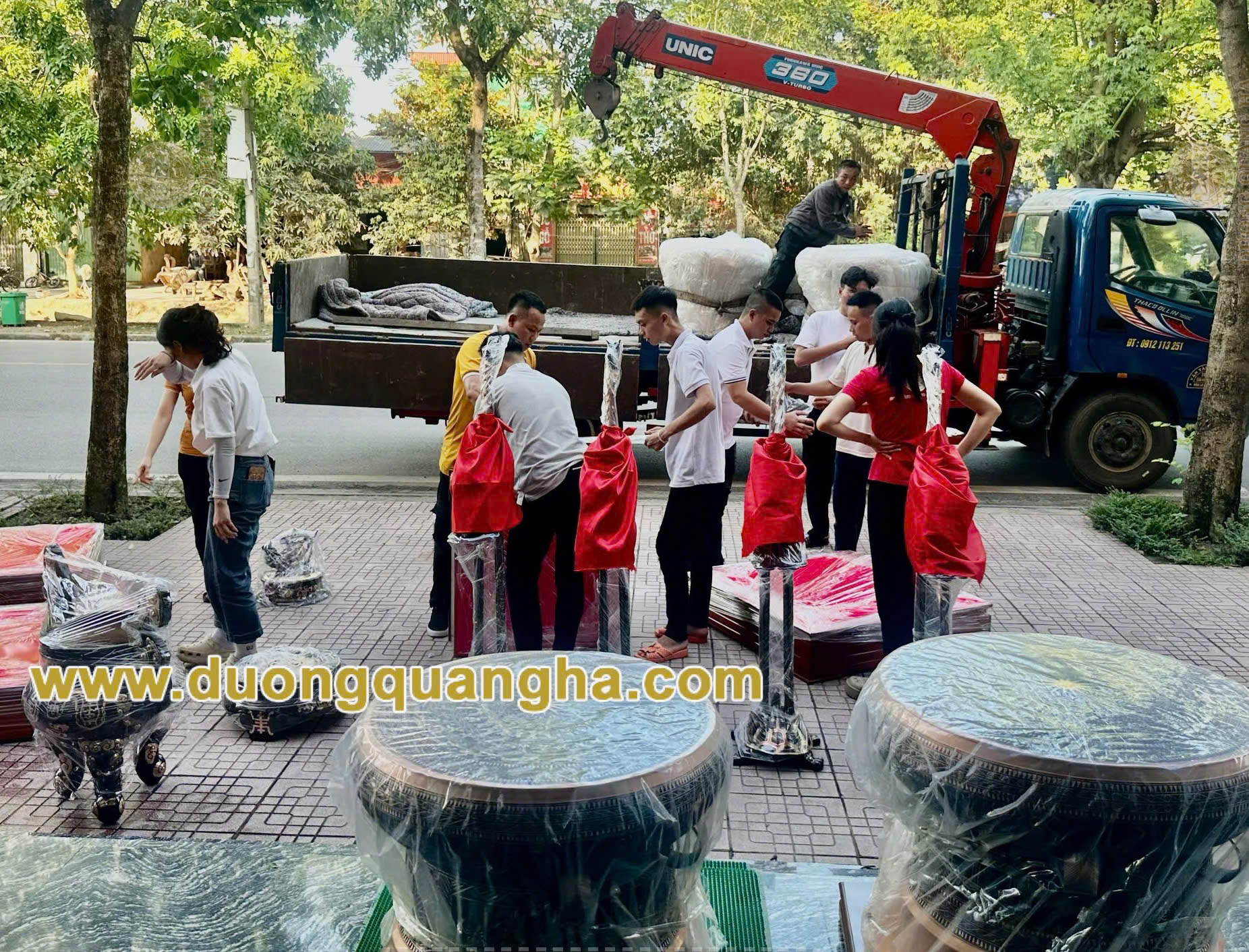 Sau một thời gian phối hợp nhịp nhàng giữa khách hàng và đội ngũ nghệ nhân, công nhân tại xưởng, từ khâu lên mẫu, tạo khuôn, đúc tượng, tinh chỉnh… đội ngũ Đúc đồng Dương Quang Hà đã hoàn thiện và bàn giao cho khách hàng Tóm tắt về sản phẩm: Tất cả sản phẩm được đúc, gia công chế tác, chạm khảm tất cả đều được làm thủ công bằng tay mỗi sản phẩm thực sự là một tác phẩm đồng mỹ nghệ tinh xảo đến mức cao nhất, với những đường nét lưu loát, có giá trị thực sự cao của những nghệ nhân, những người thợ tài hoa từ làng nghề đúc đồng Huyện Ý Yên, Tỉnh Nam Định. Kích thước sản phẩm: