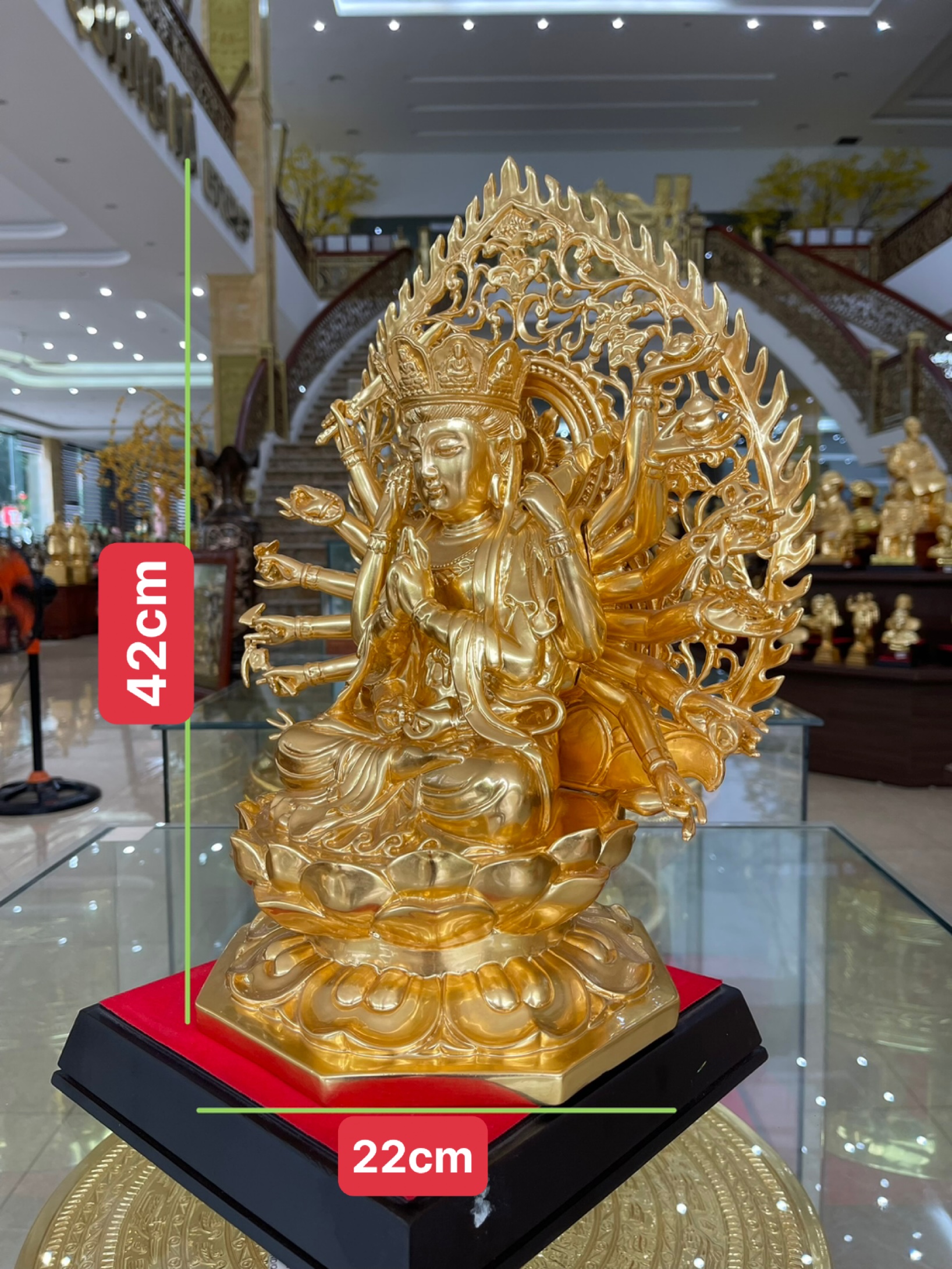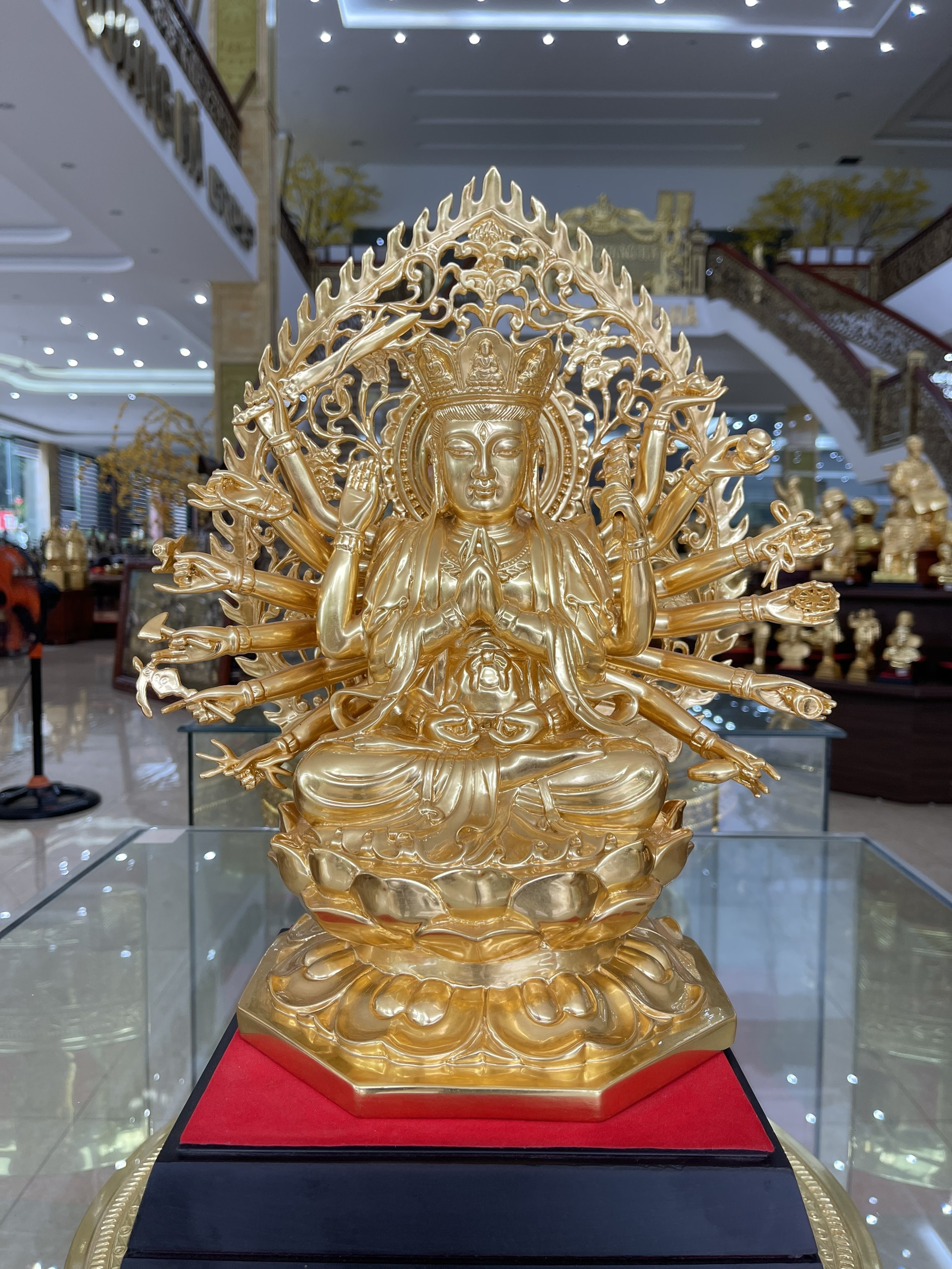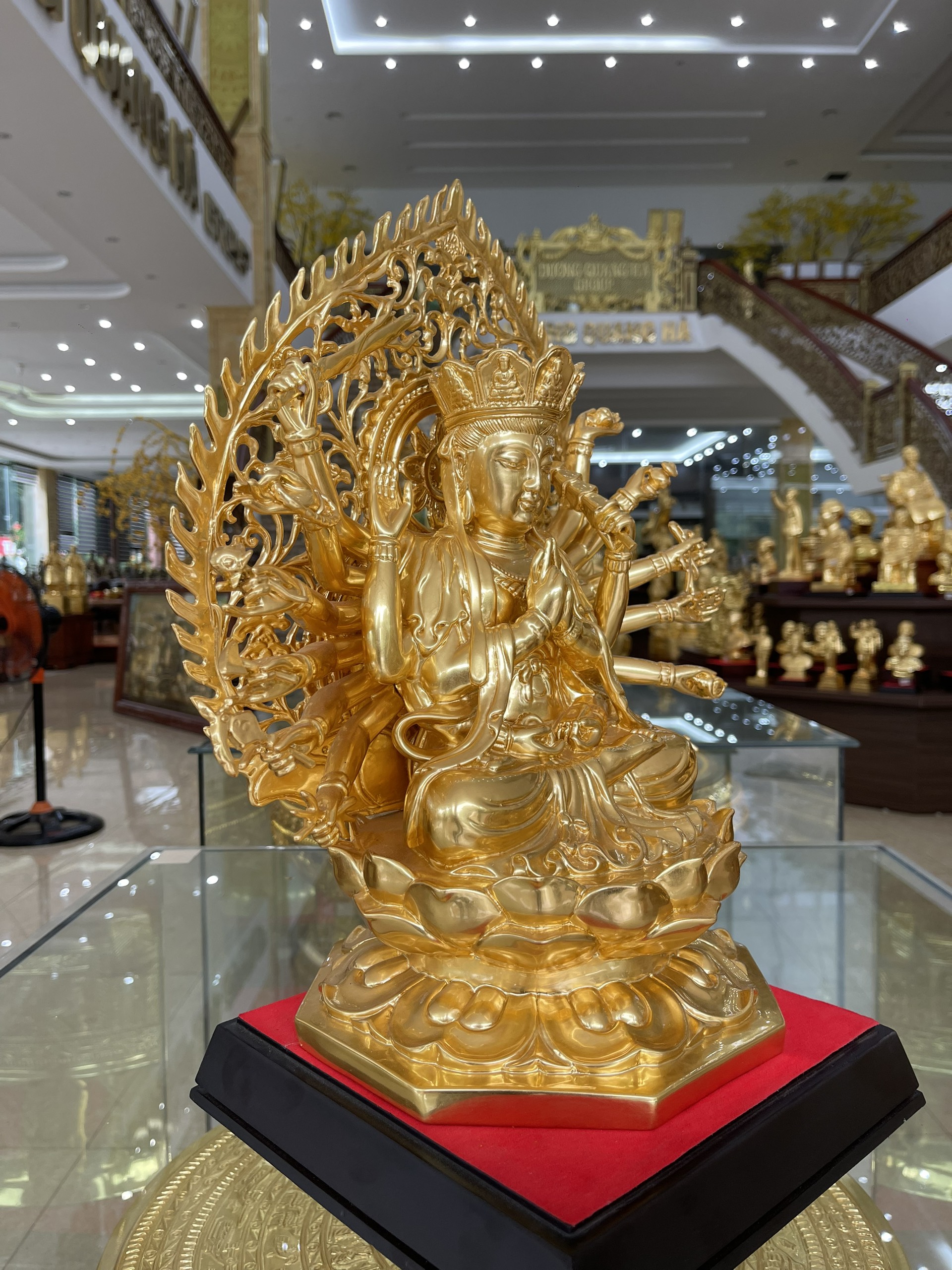 Tôn tượng chuẩn đề được Dương Quang Hà đúc thủ công trên chất liệu đồng , bên ngoài được dát lên lớp vàng 9999 tạo sự uy nghiêm sang trọng cho tượng .