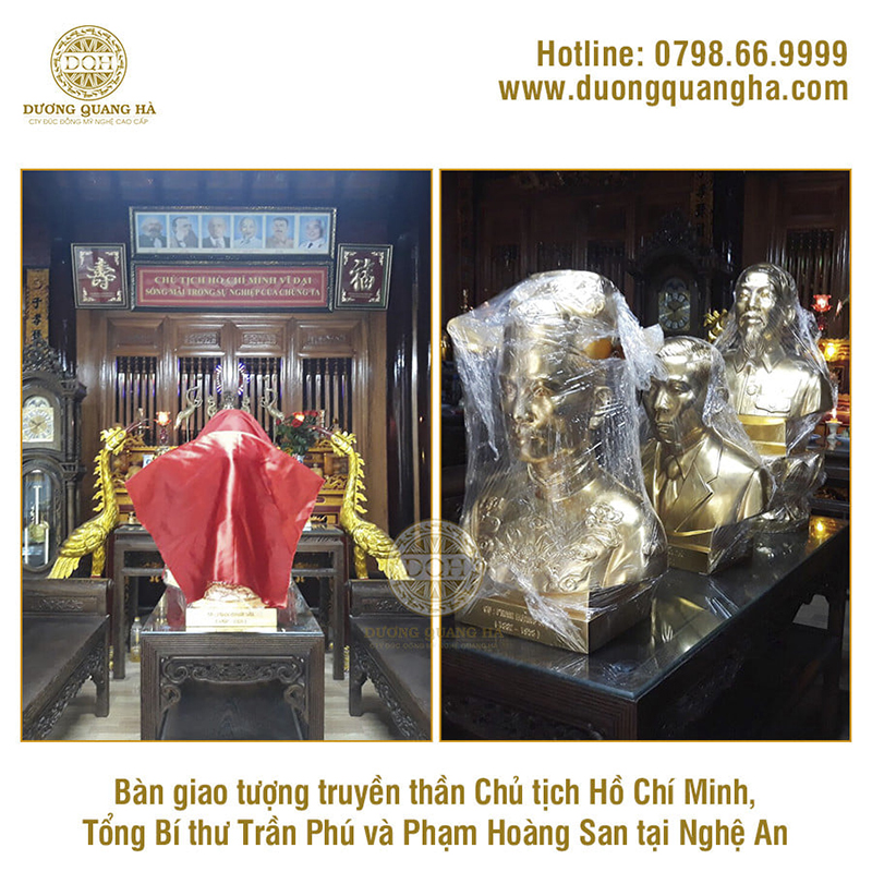 Tại các đền thờ, khu di tích thì hình tượng của những vị danh nhân, danh tướng đặt trên ban thờ là không thể thiếu. Những ngày đầu tháng 8 vừa qua, đúc đồng Dương Quang Hà cũng đã bàn giao các pho tượng, tượng đồng các vị danh nhân, danh tướng cho khu di tích, đền thờ tại Nghệ An, Đà Nẵng cũng như nhiều địa phương trên cả nước.