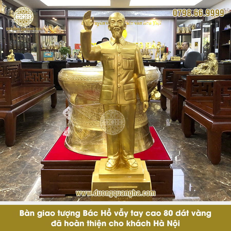 - Tượng đồng Bác Hồ vẫy tay dát vàng