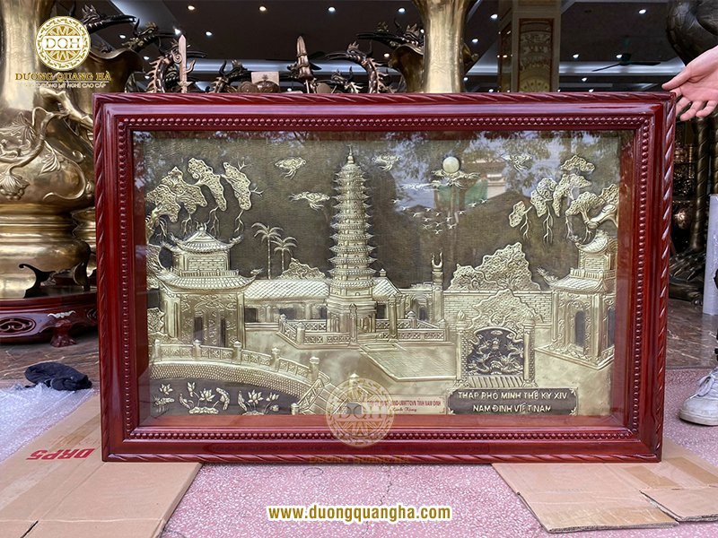Tháp Phổ Minh là công trình từ thời nhà Lý - Trần và được bảo tồn nguyên vẹn vẻ đẹp đến ngày nay. Vậy nên, tranh đồng tháp Phổ Minh được treo tại phòng khách hoặc sử dụng làm tranh đồng quà tặng đều rất hợp lý khi thể hiện tinh thần yêu nước, giữ gìn hào khí Đông A cùng văn hóa dân tộc Việt.