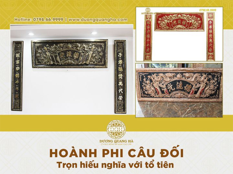Hoành phi câu đối không chỉ là vật phẩm thờ cúng, trang trí quan trọng mà còn mang những quan điểm tâm linh sâu sắc. Hoành phi câu đối có thể treo đồng thời để làm thành một bộ hoặc gia chủ cũng có thể treo những bức hoành phi, câu đối riêng biệt.