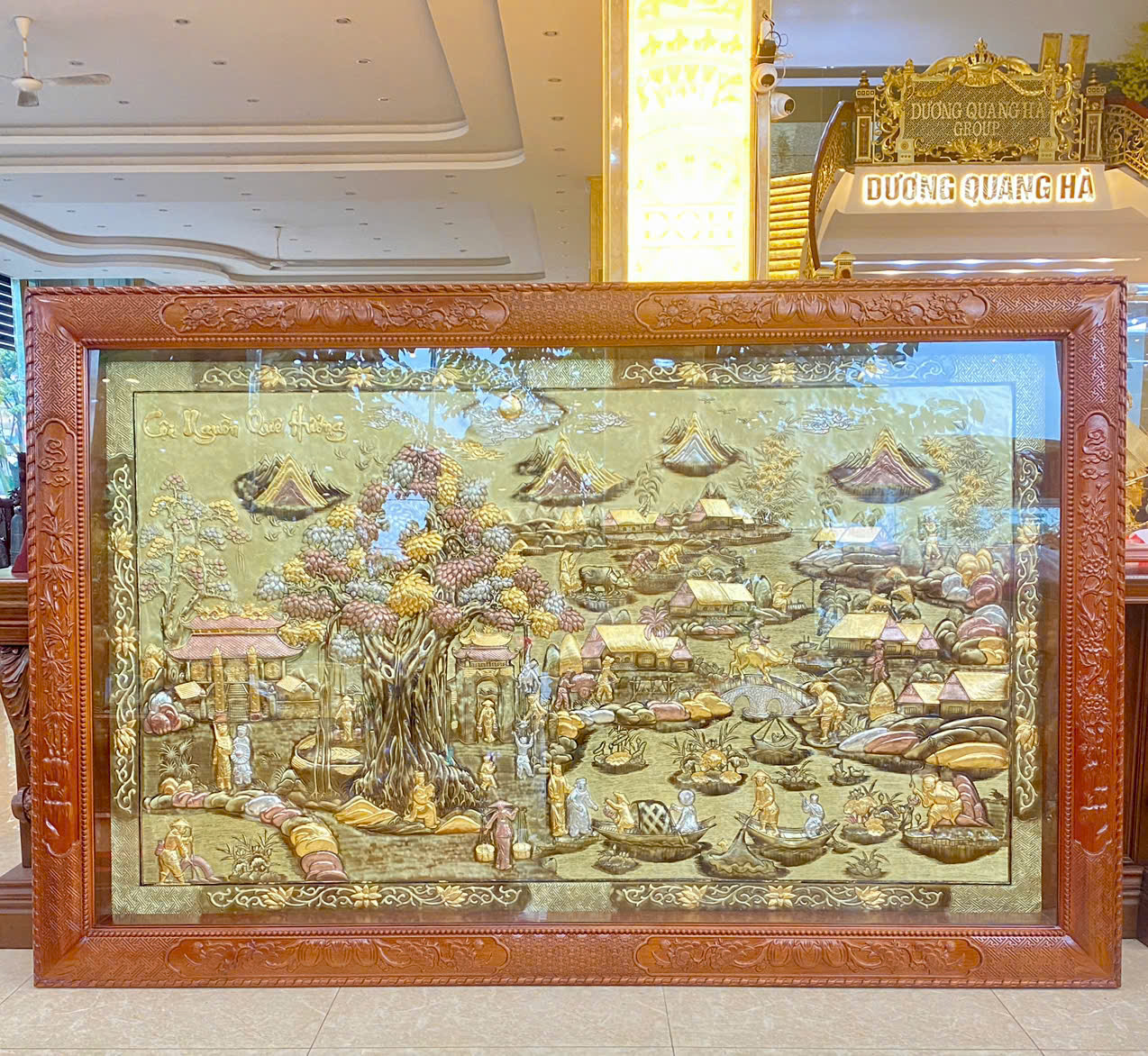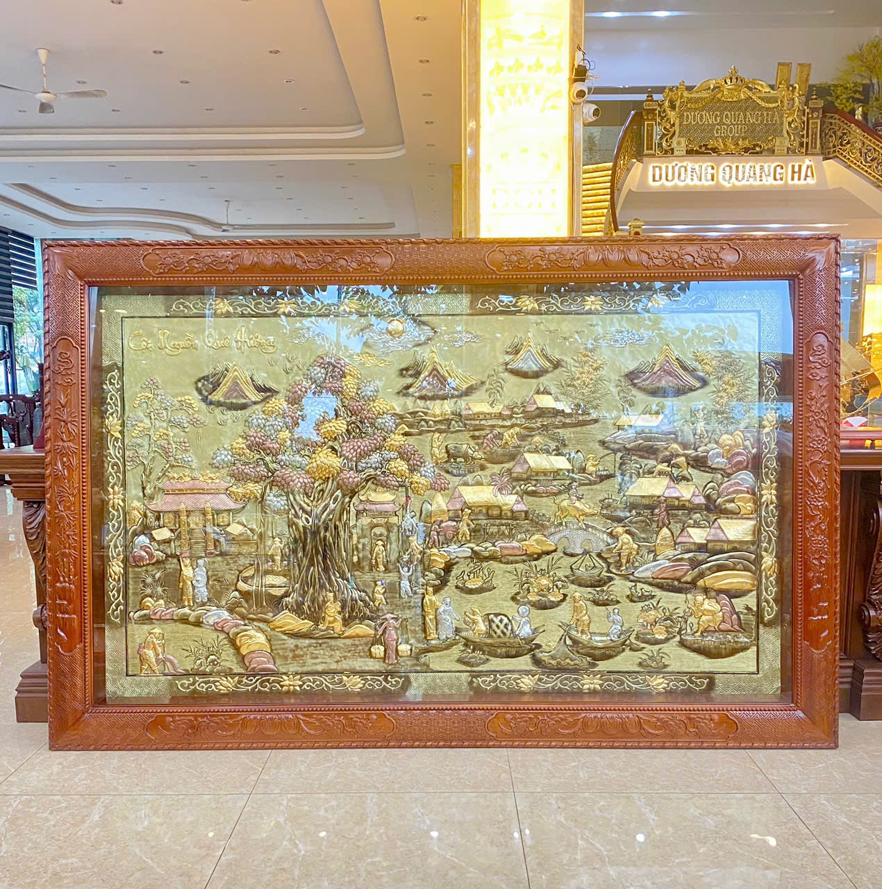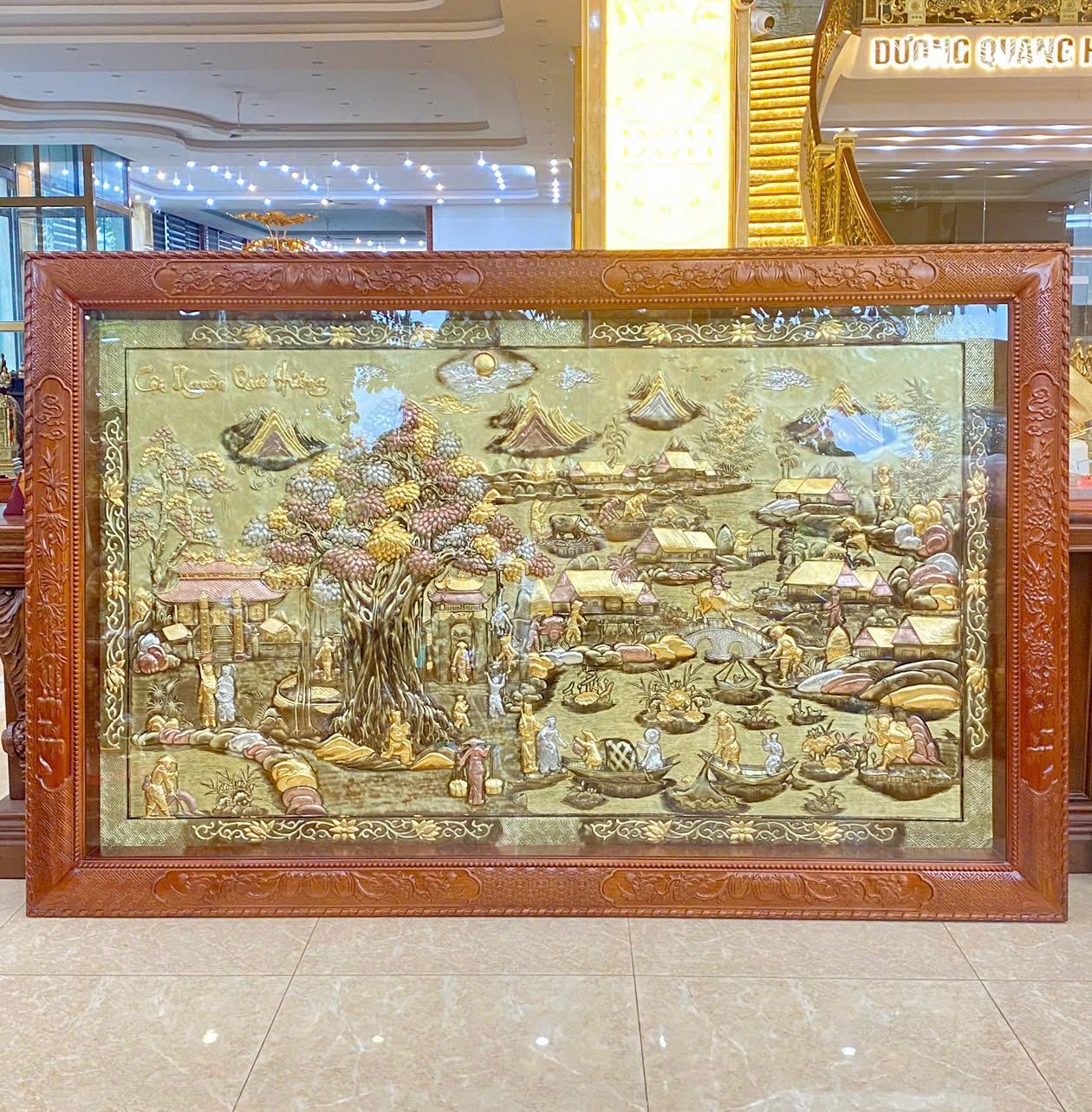 tranh cội nguồn dát vàng 9999 + khung gỗ gụ