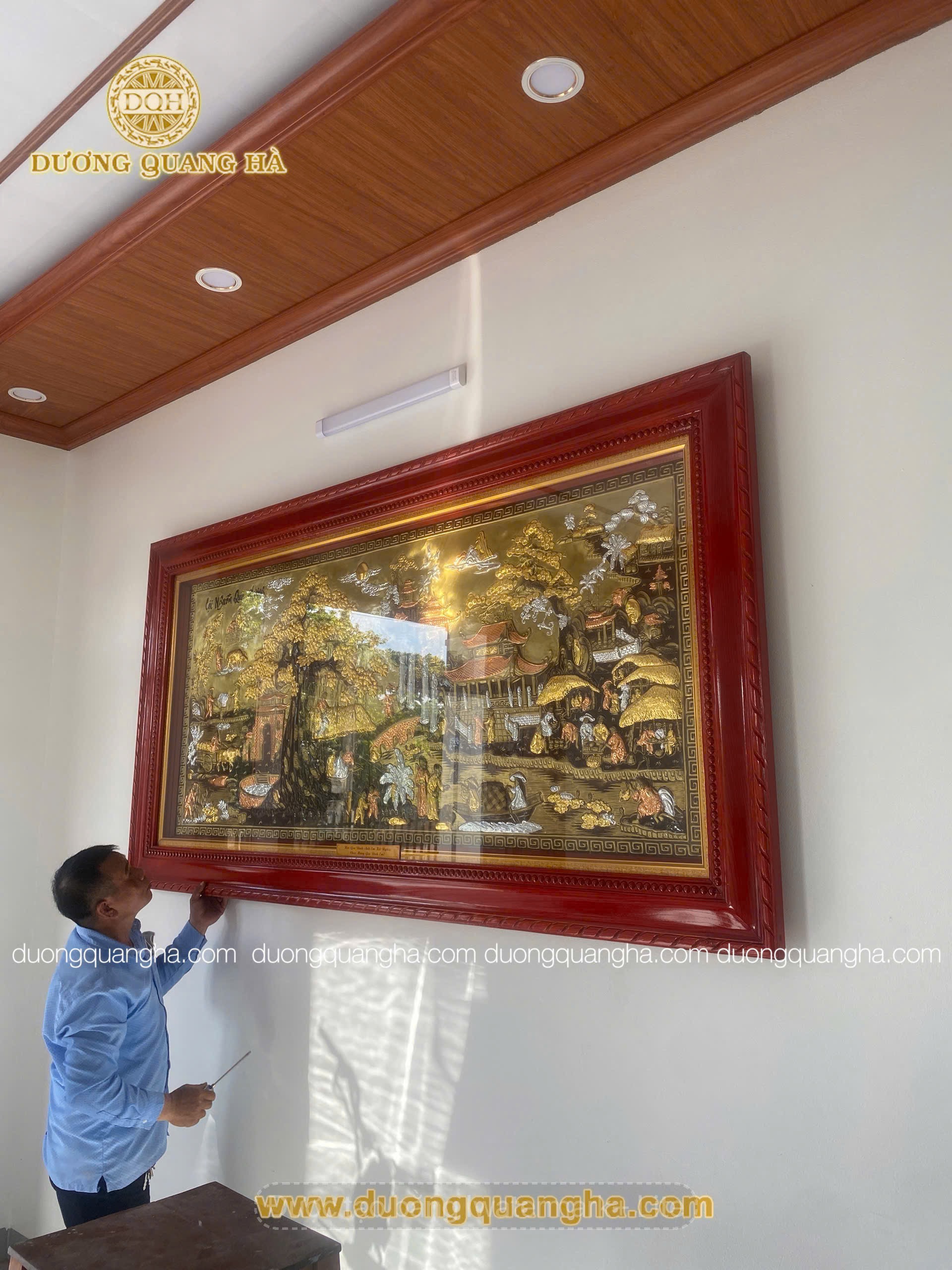Với những bức tranh dát vàng, tấm đồng sẽ được nhúng trong nước để mạ điện phân. Những bức nay sẽ được người thợ dùng miếng kim loại dát lên trên những chi tiết của tấm đồng. Với bức tranh giữ nguyên màu mộc sẽ phối màu làm sao để cho nó giữ nguyên màu sắc của đồng.
