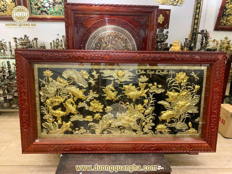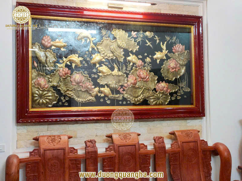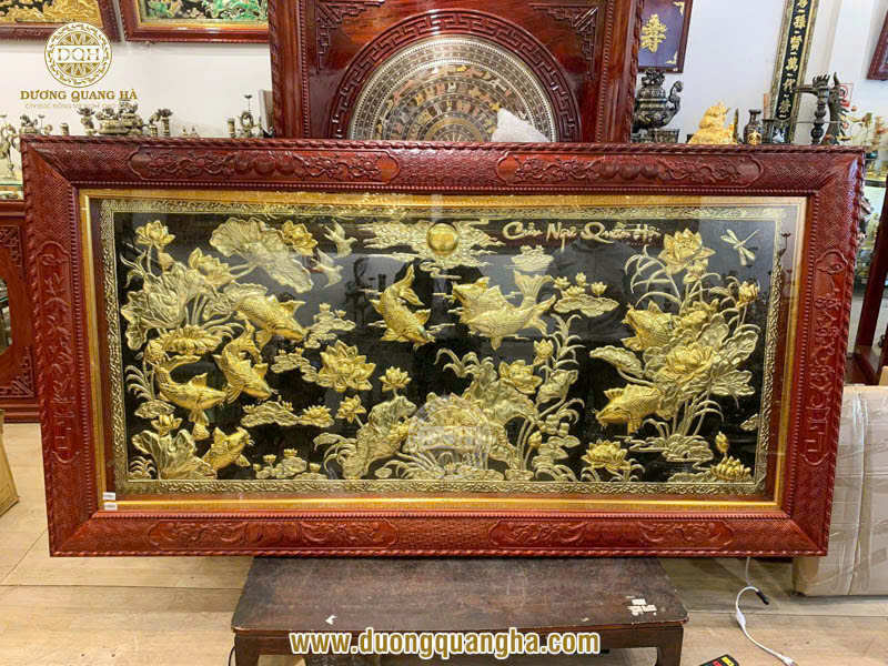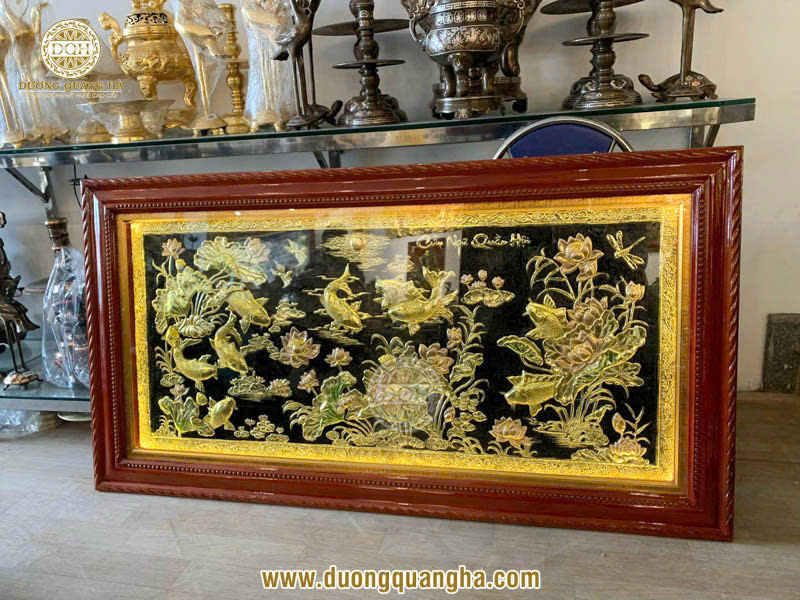- Tranh đồng: Tranh được chạm khắc trên bề mặt đồng, mang nét đẹp cổ kính, đẳng cấp. Tranh đồng vừa bền theo thời gian, vừa có giá trị phong thủy cao, giúp thu hút tài lộc và vượng khí.