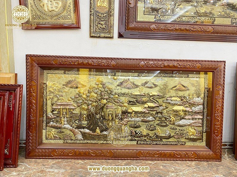 Mỗi bức tranh đồng cội nguồn quê hương tại Đúc đồng Dương Quang Hà mang trong mình một câu chuyện độc đáo. Những đường nét tinh tế chạm nổi khéo léo tái hiện cảnh quan thiên nhiên, đời sống quê hương Việt Nam, tạo nên một không gian sống động và chân thực.