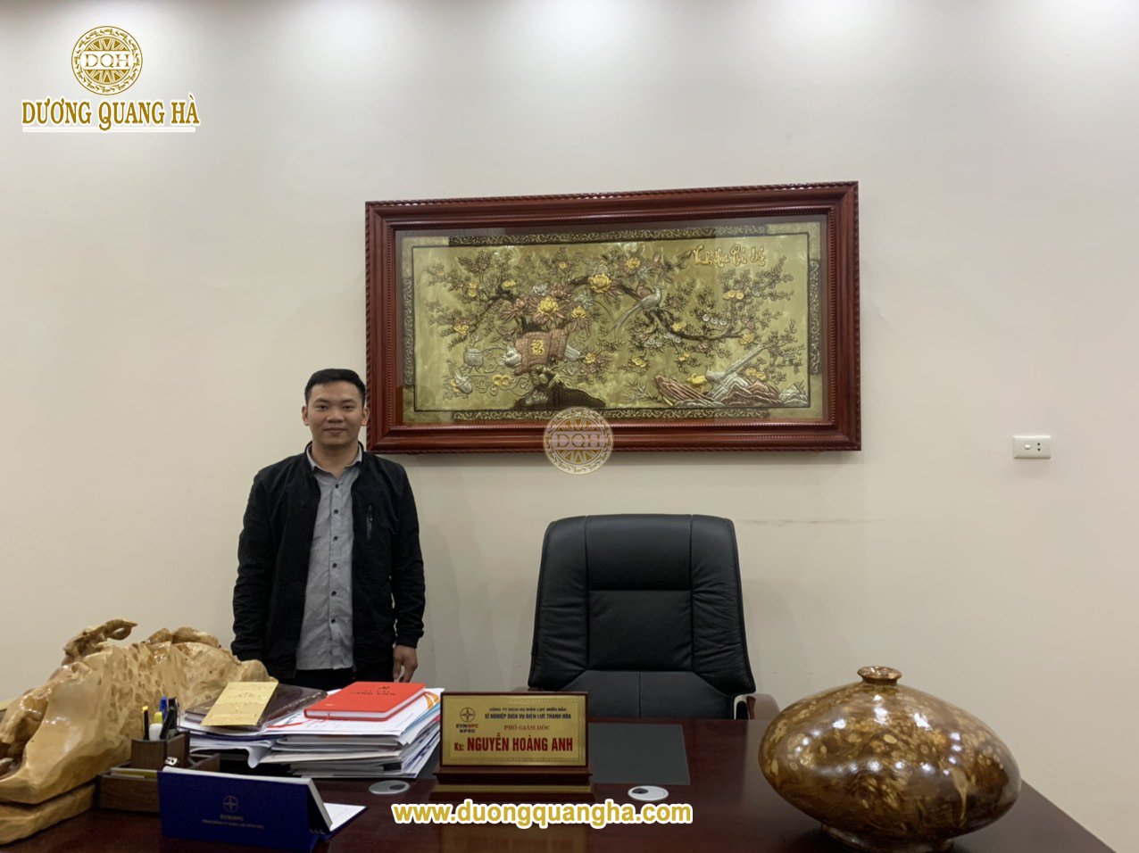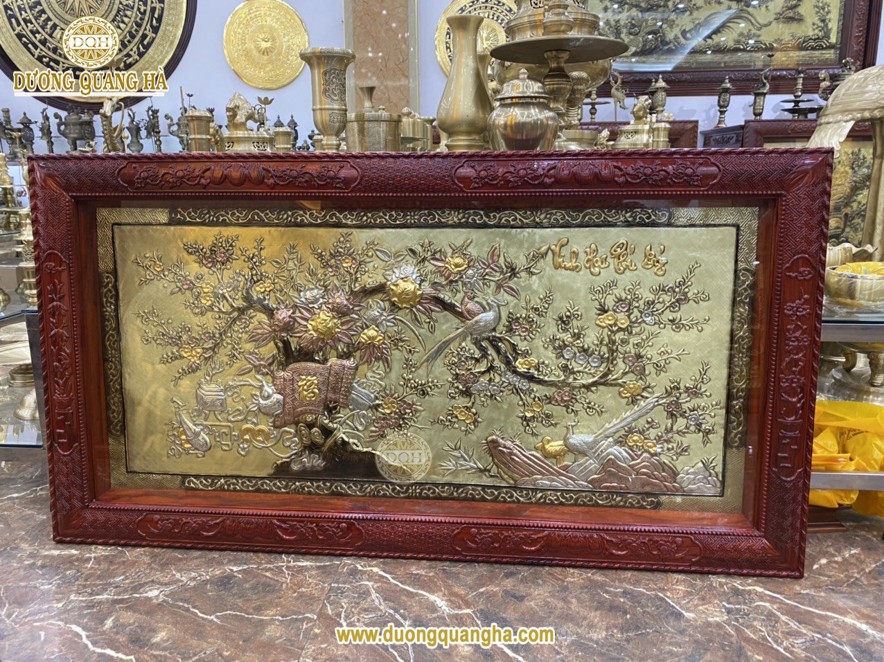 Tên gọi sản phẩm: Tranh đồng Vinh Hoa Phú Quý khung gỗ Hương Cao Cấp