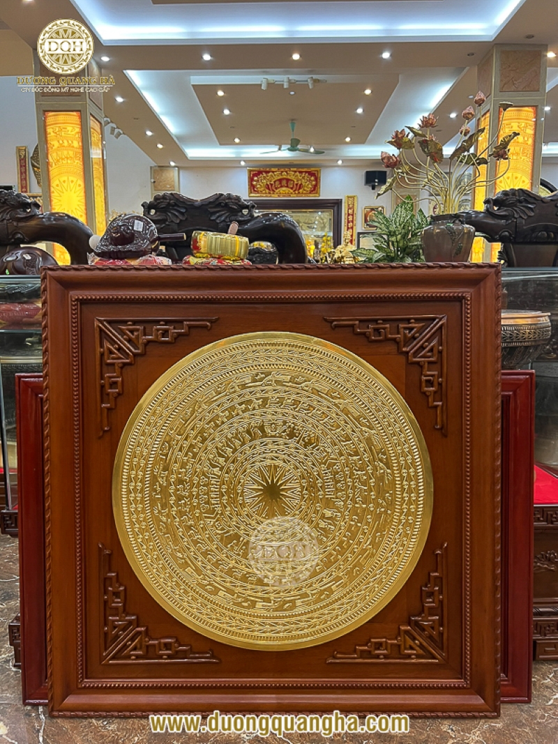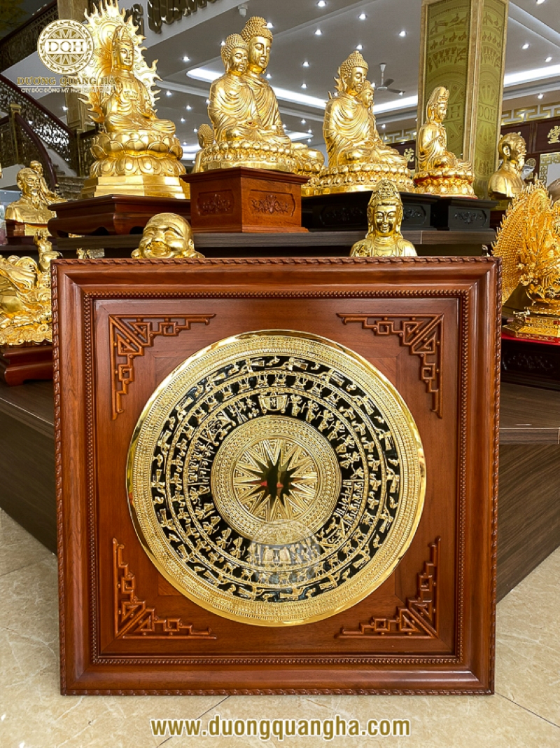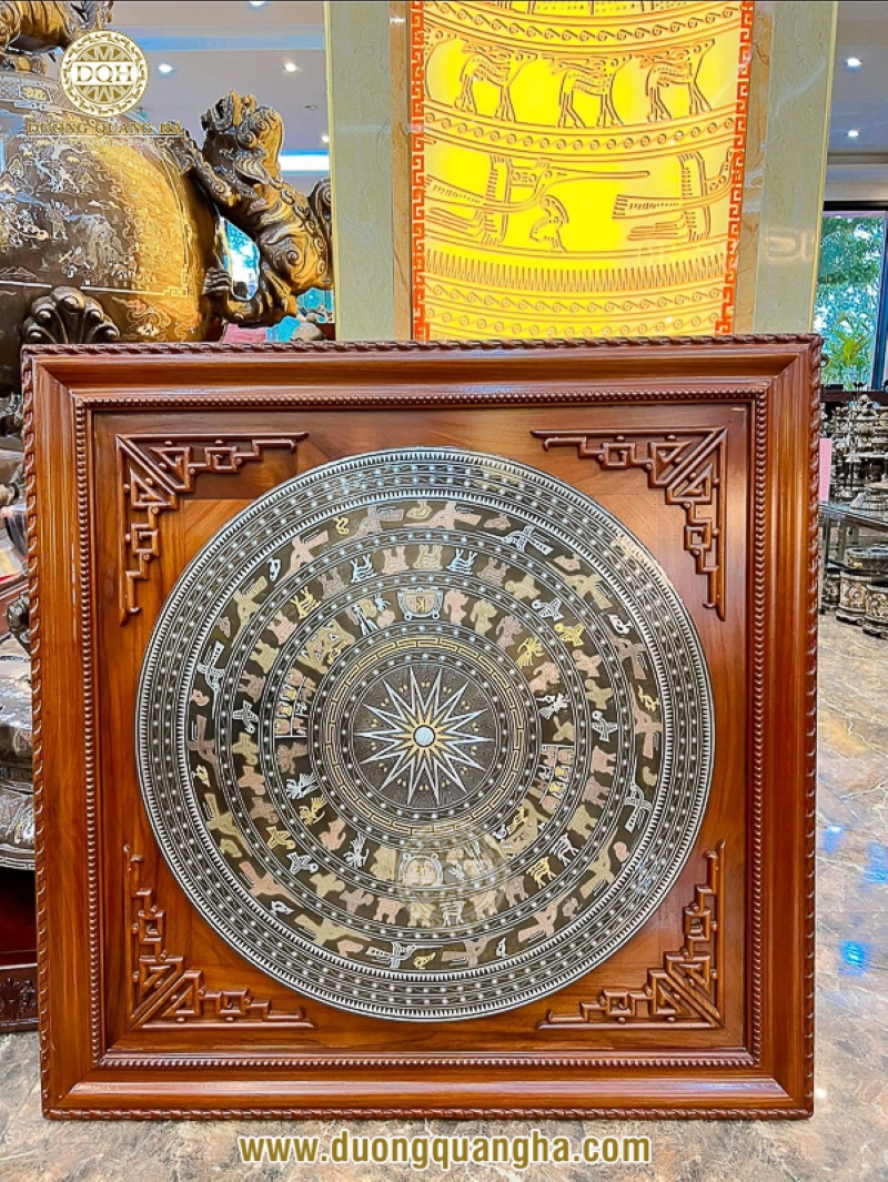 - Giá trị thẩm mỹ và phong thủy: Về mặt thẩm mỹ, tranh mặt trống đồng mang đến một không gian trang nhã, sang trọng và đậm bản sắc dân tộc. Đặc biệt, trong phong thủy, tranh trống đồng được coi là biểu tượng của sự hài hòa và thịnh vượng. Treo tranh ở những vị trí thích hợp trong nhà như phòng khách hay phòng làm việc, có thể giúp gia chủ thu hút vượng khí, mang lại may mắn và tài lộc, đồng thời giữ gìn sự bình an và hạnh phúc cho gia đình.