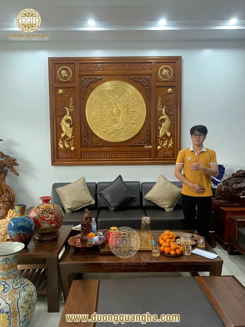 Treo tranh trống đồng tại phòng khách giúp mang đến sự sang trọng và trang nhã cho không gian.