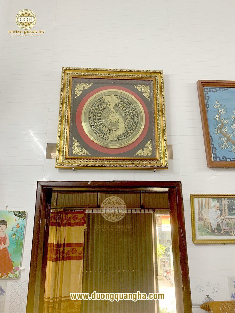 Treo tranh mặt trống đồng tại không gian trang trọng nhất trong nhà sẽ giúp mang lại những điều tốt lành cho các thành viên trong gia đình. Bên cạnh sự sang trọng, tranh trống đồng cũng là điểm nhấn thể hiện nét đẹp văn hóa ấn tượng, lòng tự hào dân tộc Việt.
